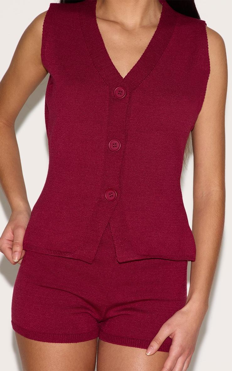 Tailored from wine knitted material, this vest features a longline fit with a deep v neckline and button fastenings. For a fashion-forward two piece set look, team this petite wine knitted longline vest with the matching hotpants, a slouchy vintage style shoulder bag and loafers.Length approx 45.5cm/18inch (Based on sample size XS)Model wears size XSModel Height - 5ft 3inchp]:!mb-4inch>Brand: PrettyLittleThingCategory: KnitwearProduct type: TopColor: WineMaterial: KnitNeckline: V NeckSleeves: SleevelessOccasion: Day