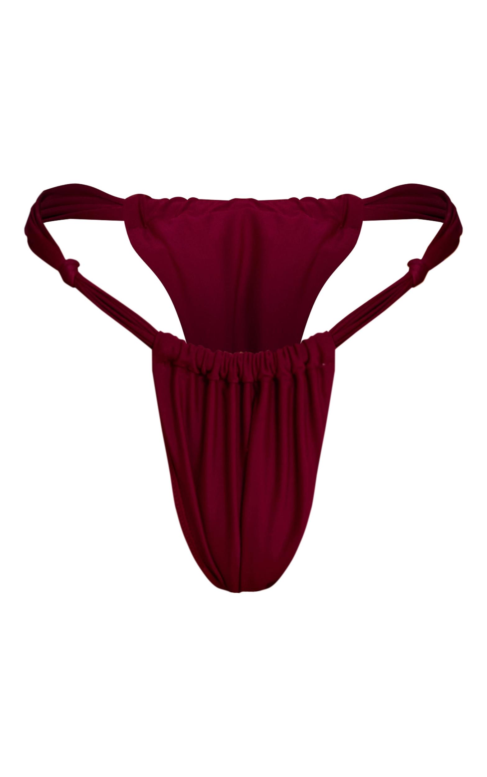 Own your poolside look in these plus charm detail ruched tanga bikini bottoms. Made from plum toned material, these bikini bottoms have charm detailing at the hips and flattering ruching. Pair them with the matching top and complementing gold jewelry.Length approx 28cm/11inch (Based on sample size US 4)Model wears size UK 8/ EU 36/ AUS 8/ US 4Model Height - 5ft 6inchp]:!mb-4inch>Brand: PrettyLittleThingCategory: SwimwearProduct type: Tanga Bikini BottomColor: PlumMaterial: SwimOccasion: Day