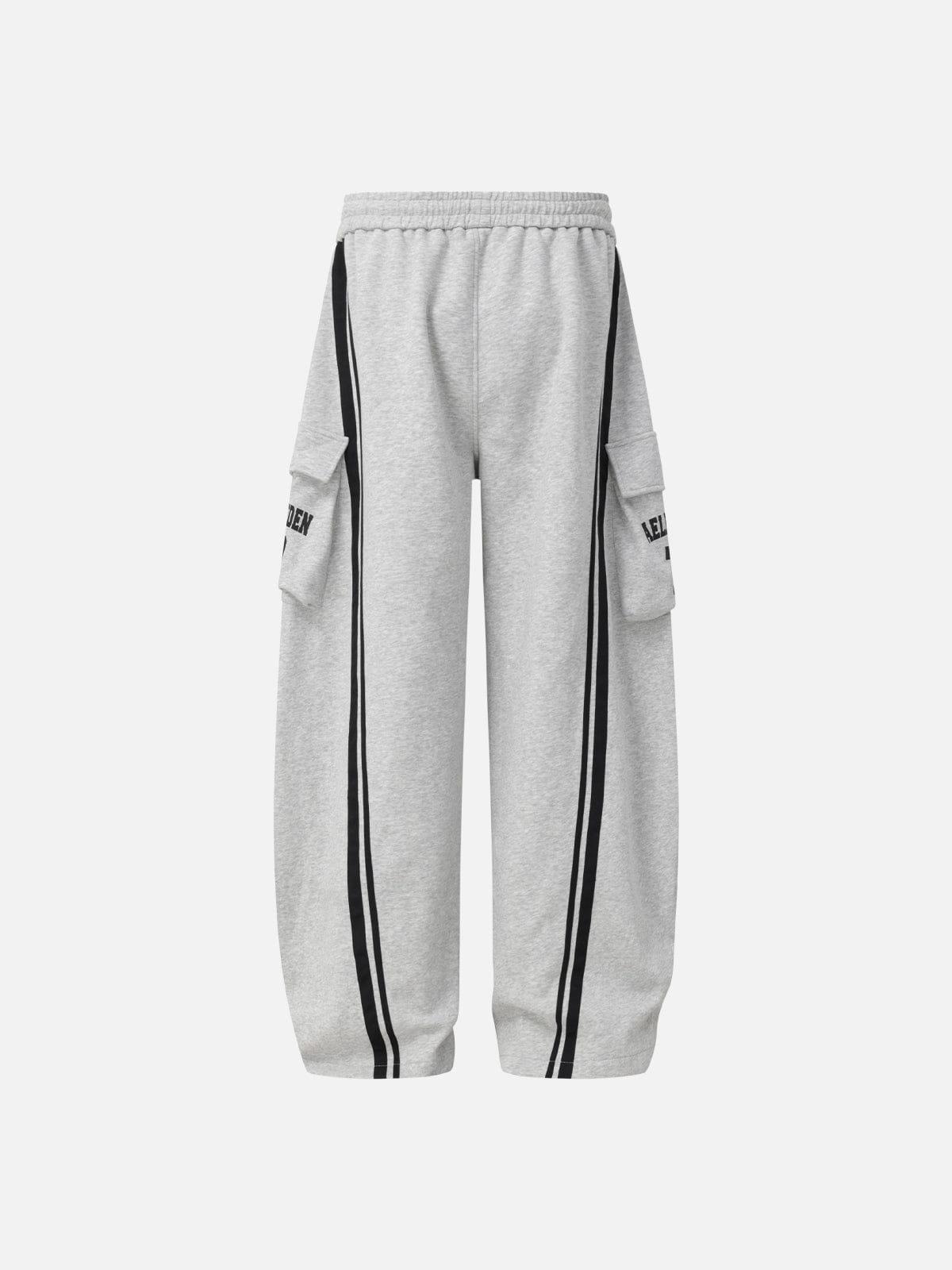 Cut in Aelfric Eden’s signature baggy barrel silhouette, these sweatpants feature a relaxed upper fit with a subtly tapered leg for a sculpted street shape. Clean stripe panel detailing adds visual structure, while the voluminous drape enhances movement and attitude. Finished with utility-style side pockets, they balance comfort and edge—easy to pair with hoodies, zip-ups, or graphic tees for a confident, everyday street look. Material: 60% Cotton 40% Polyester. Clothing details: Stripe Panel. SIZE GUIDE