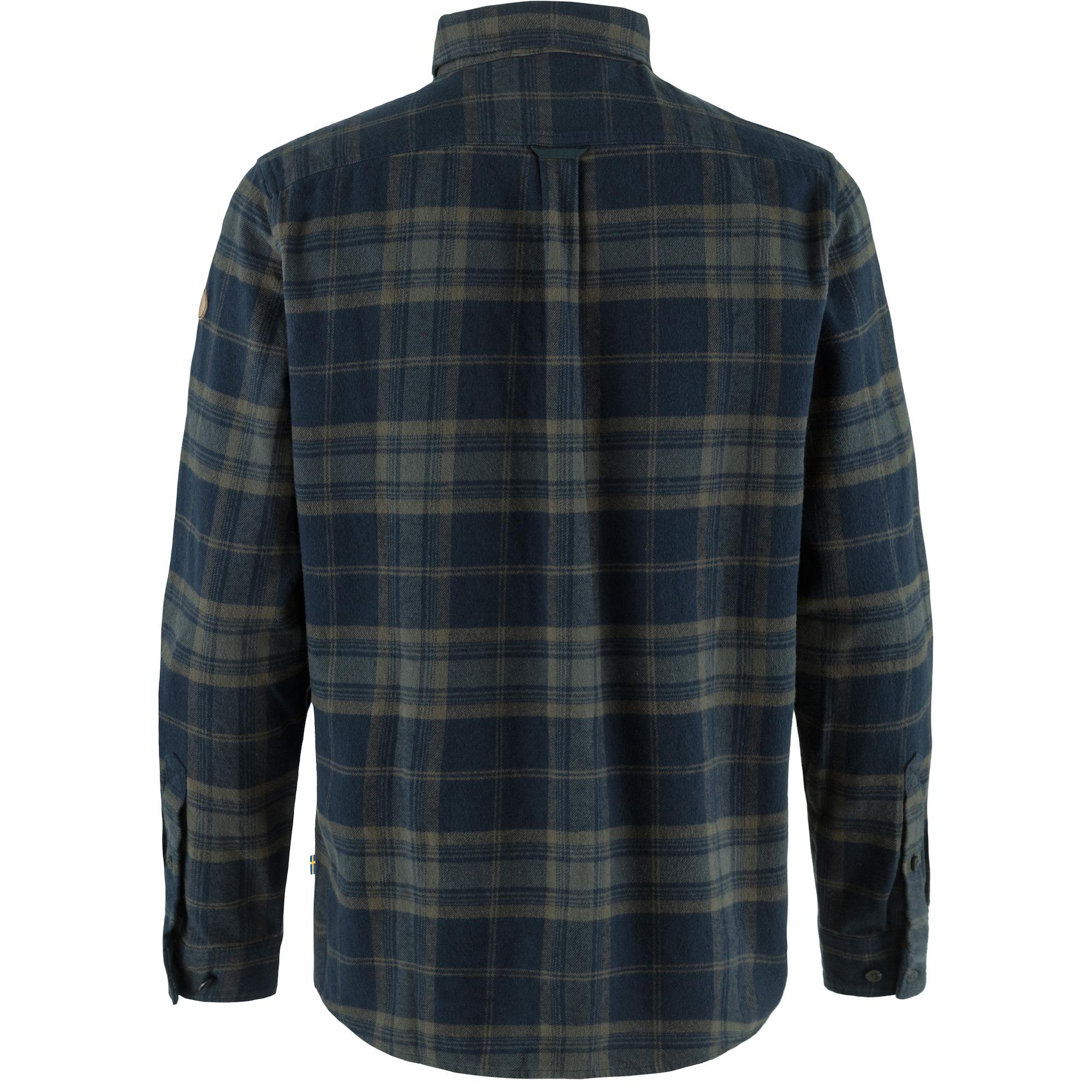 A robust long-sleeved shirt made from heavy organic cotton flannel for cooler days in the outdoors. Produced without PFAS.