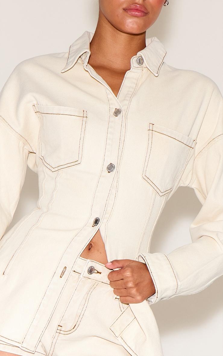 The perfect fusion of structure and ease, the washed stone seam detail cinch waist longline shirt is designed to shape and define. Its unique longline cut features a sharp collared neckline and practical chest pockets, while distinct seam details highlight the cinched waist for a flattering shape. Pair this versatile piece with the coordinating denim shorts for an undeniable two piece set look, or throw it over a simple Vest and tailored pants for a polished yet relaxed feel. Finish with chunky sneakers for an on-point day outfit that’s all yours.Length approx 48.5cm/19inch (Based on sample size US 4)Model wears size UK 8/ EU 36/ AUS 8/ US 4Model Height - 5ft 7inchp]:!mb-4inch>Brand: PrettyLittleThingCategory: DenimProduct type: JacketColor: Washed StoneMaterial: Rigid DenimDesign: PlainNeckline: ShirtSleeves: LongOccasion: Day