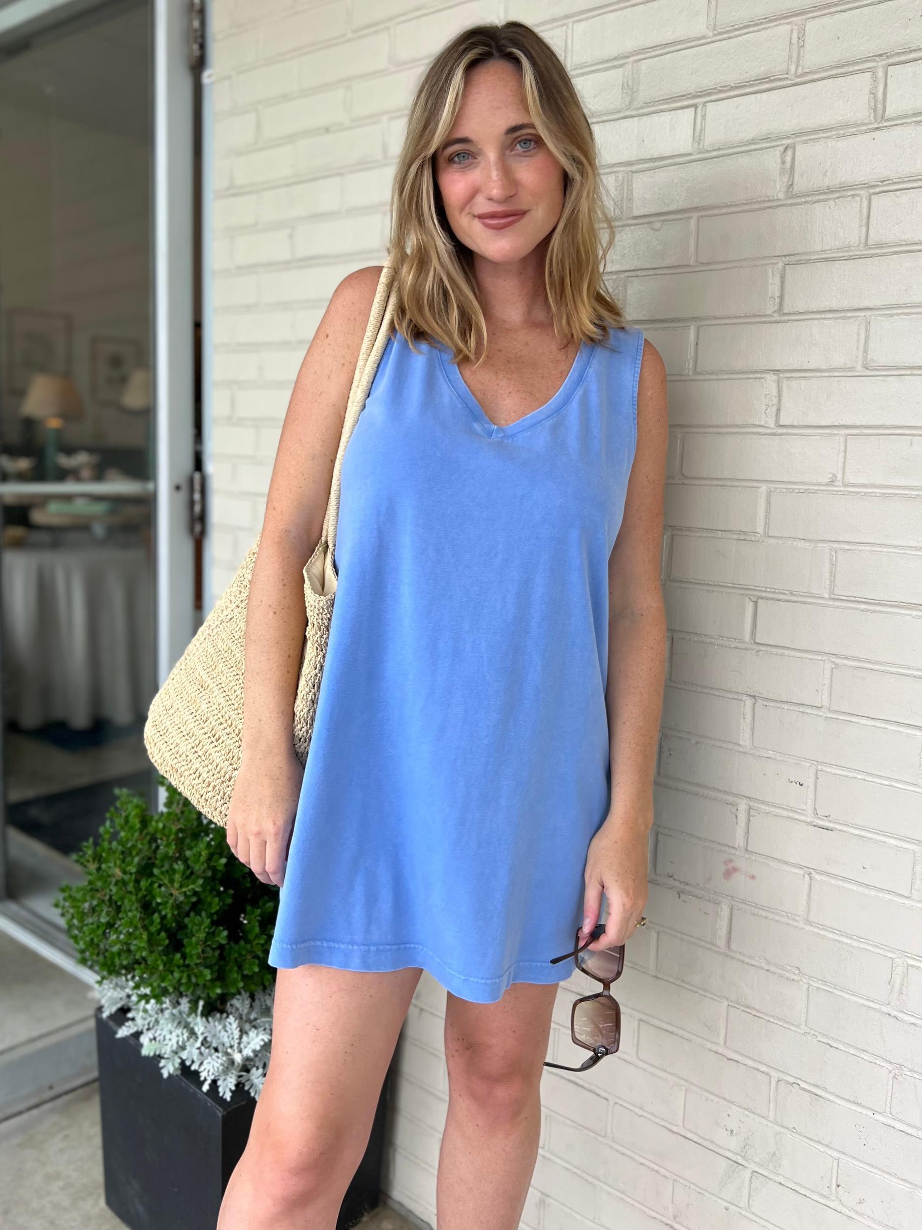 Easy and breezy, this v-neck mini dress is made from soft, midweight cotton jersey for all-day comfort. The sleeveless, relaxed fit makes it perfect for dressing up or keeping it casual.