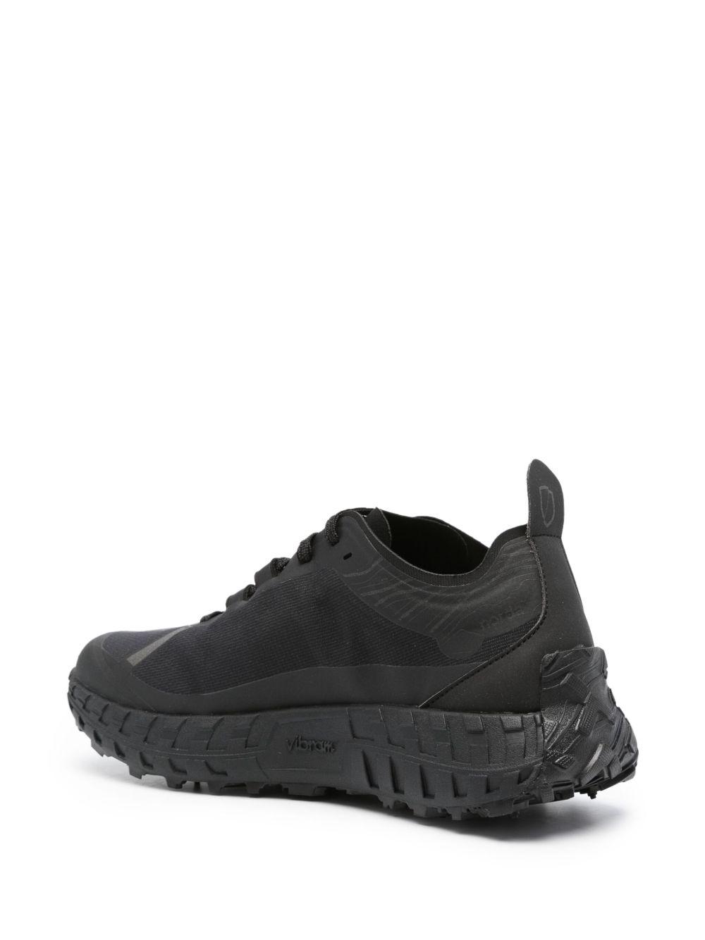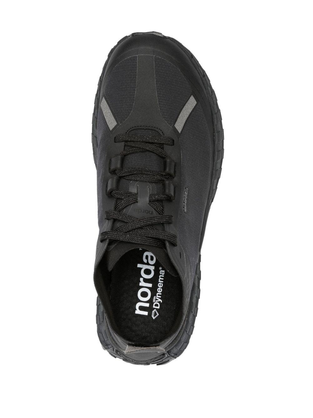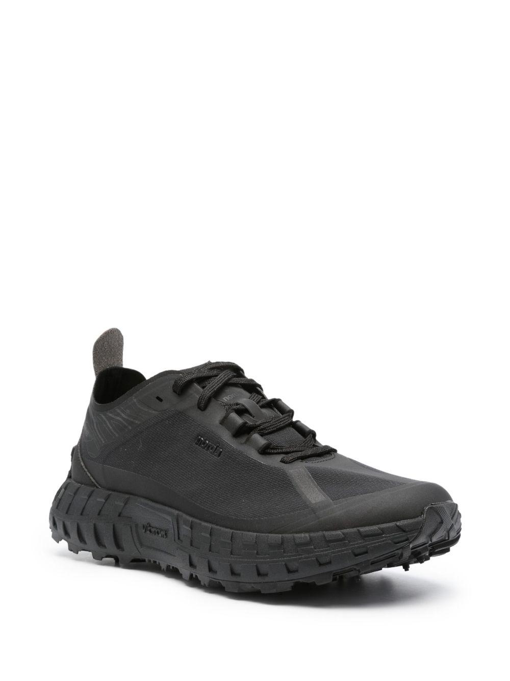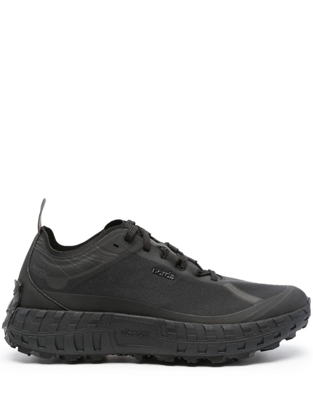 norda 001 panelled lace-up sneakers | Black | black | multi-panel design | seamless | logo print to the side | logo patch at the tongue | rubber toecap | logo pull-tab at the heel | round toe | front lace-up fastening | branded insole | Vibram® sole | Rubber/Rubber/Fabric/Fabric | Low-Tops | Trainers | Shoes | Women | Low-Tops | Sneakers | Shoes | Men