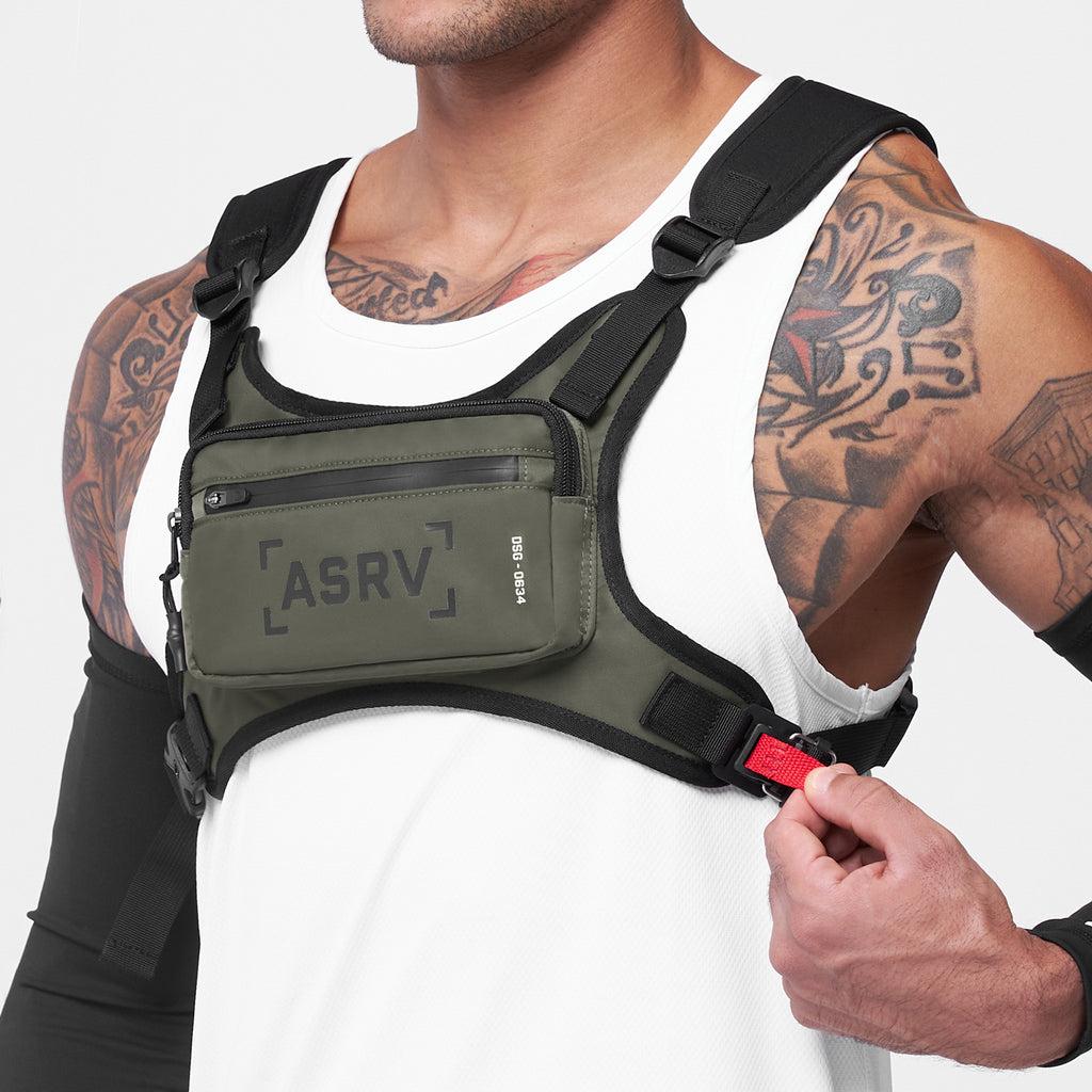 Minimalist chest pack to store your essentials while conditioning. Designed with neoprene padding on all contact points to be comfortable without a shirt. The back panel features a slim zipper pocket for extra storage and reflective print for high visibility at night.