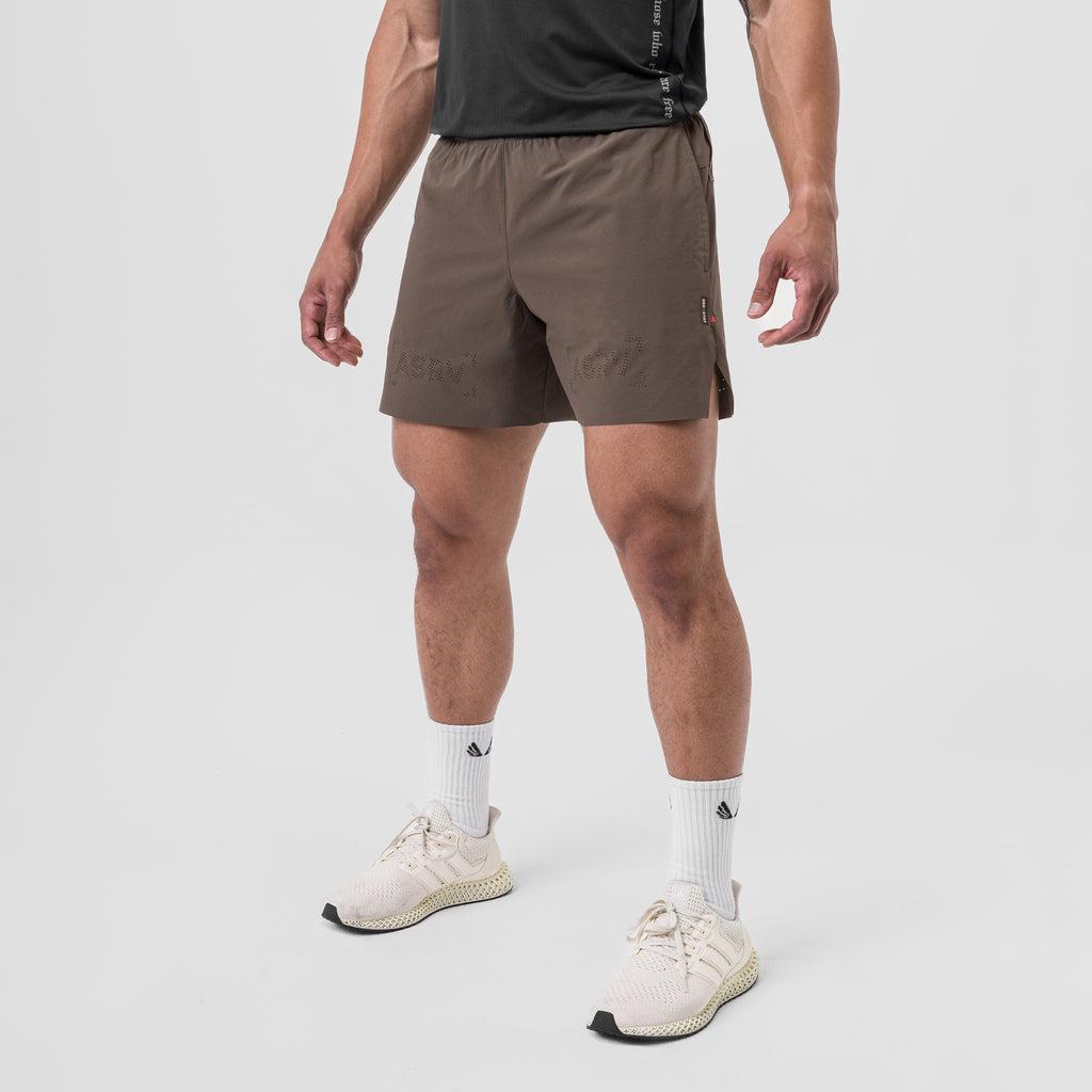 Durable training shorts in a refined aesthetic. Distinguished by laser perforated branding across the front and ventilation holes on the back. The shell is constructed from a technical ripstop material with four-way stretch. An internal brief liner provides support and moisture control. Internal drawstrings and a channeled waistband add an adjustable fit. Storage includes a hidden right-side zip pocket, a left-side open pocket, and a utility loop for a shirt or towel. Side splits with reinforced triangle tack seams enhance range of motion. Subtle reflective branding on the back of the legs completes the design