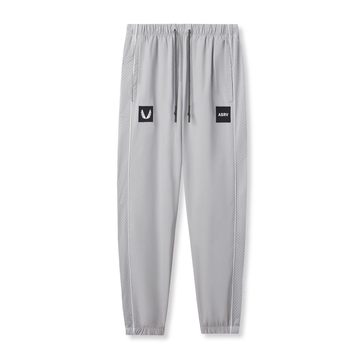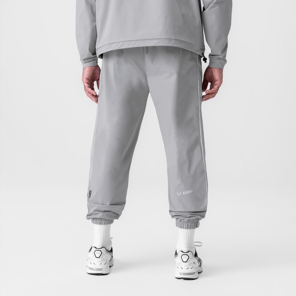 Oversized track pant made from durable mid-weight ripstop with four-way stretch. DWR water-resistant Right-side zip pocket Left-side hand pocket Mesh side paneling for ventilation 3M™ reflective drawstrings Patch branding on the front Reflective branding on the back of the right leg Model is 5'11 175lbs and wearing a size M.