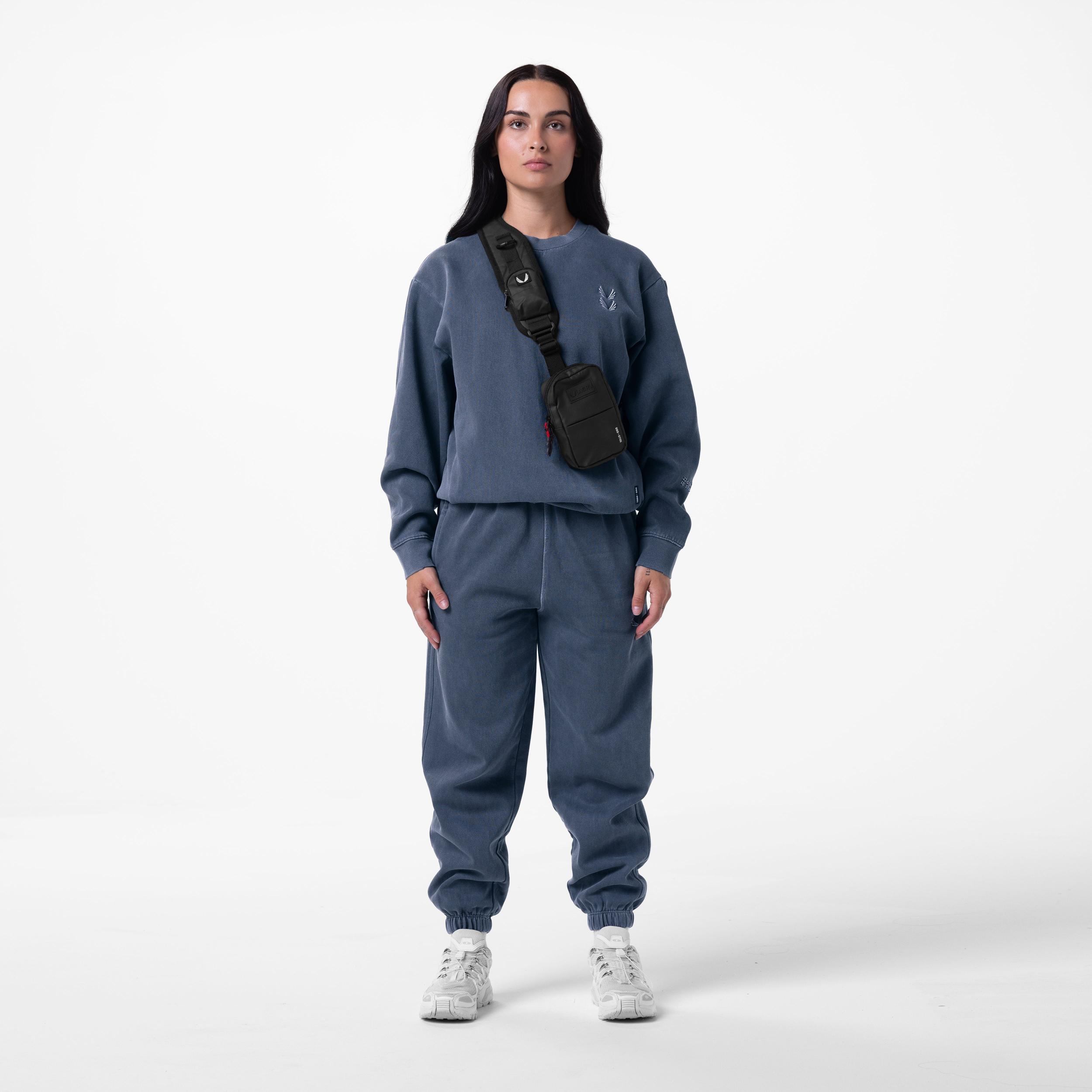 Warm-up crewneck with subtle distressing at the hems for a vintage aesthetic. Constructed from a soft fleece that is anti-odor and stone-washed for a worn-in feeling. Featuring ribbed side panels with hidden hand pockets on each side. Finished with embroidered branding on the chest and left sleeve. Model is 6'1 175lbs wearing a size M.