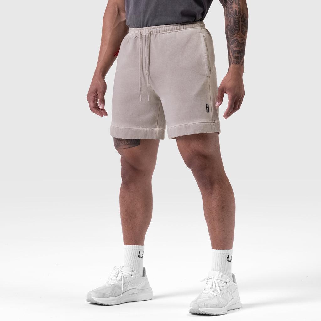 Vintage, relaxed-fit sweat shorts made from an updated midweight version of our Tech Essential™ fabric, an advanced cotton blend with SilverPlus® threads for added stretch and anti-odor functionality. Garment-dyed and stone-washed for a soft, broken-in feel, with light distressing at the seams and bottom hems. Features a right-side zip pocket with custom woven puller, a left-side open pocket, and a back overlay pocket. Finished with embroidered logos. Model is 5'11, 195lbs and wearing a size M