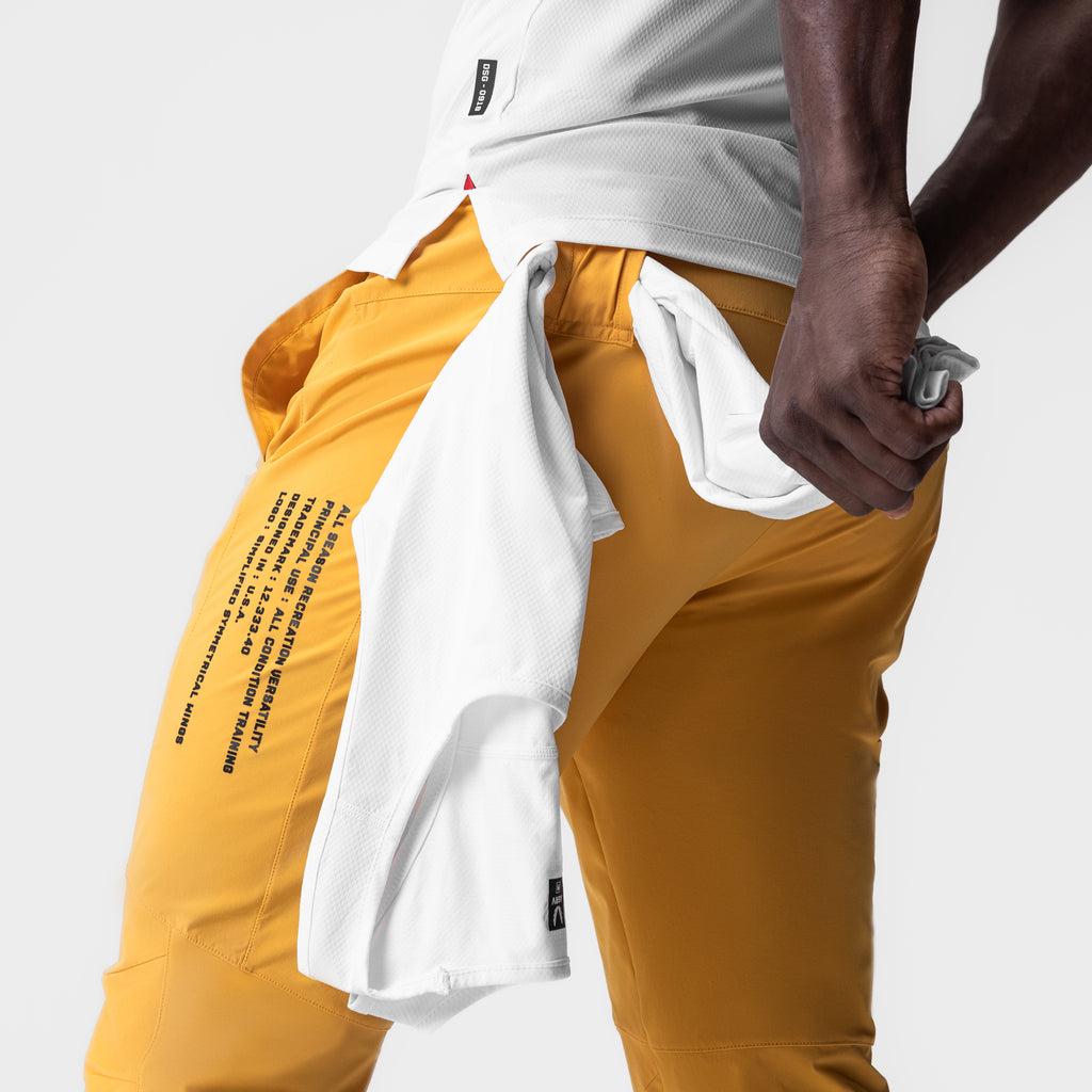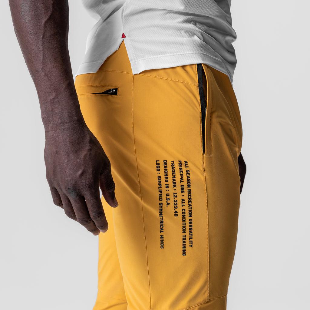 Versatile jogger constructed from Tetra-Lite™, an extremely lightweight, durable material with a DWR treatment for water-repellency. Featuring distinguished moto knee panels with underlying ventilation panels for breathability. Side gusset panels on the legs offer complete freedom of movement. Angled covered ankle zips allow for easy removal over shoes. Storage includes a right-side zip pocket, left-side open pocket, back zippered wallet pocket, and a utility loop for a shirt or towel. Finished with subtle reflective heat-transfer branding.