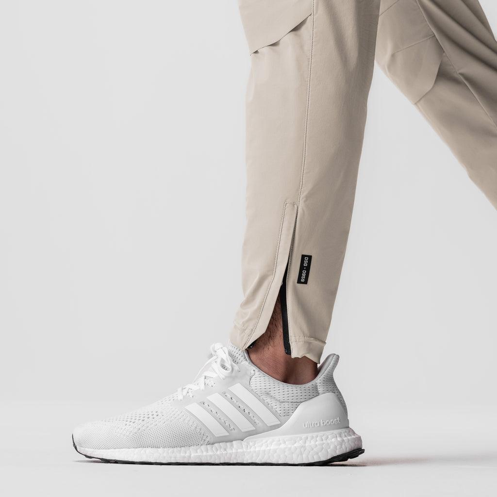 Versatile jogger constructed from Tetra-Lite™, an extremely lightweight, durable material with a DWR treatment for water-repellency. Featuring distinguished moto knee panels with underlying ventilation panels for breathability. Side gusset panels on the legs offer complete freedom of movement. Angled covered ankle zips allow for easy removal over shoes. Storage includes a right-side zip pocket, left-side open pocket, back zippered wallet pocket, and a utility loop for a shirt or towel. Finished with subtle reflective heat-transfer branding.