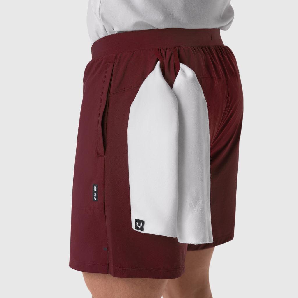 A lightweight 6" training short made from Aerotex™ — our lightest stretch-woven shell with a textured surface for faster drying and a water-repellent finish. Designed with an overlay side split hem for full mobility and a structured waistband lined with AeroSilver® for added durability and antimicrobial protection. Flat drawstrings with soft-touch cylinder tips offer a secure fit. Features include a welt hand pocket, bonded zipper pocket, secure internal power mesh device pocket, and a self-fabric towel loop at the side seam. Finished with reflective branding throughout.