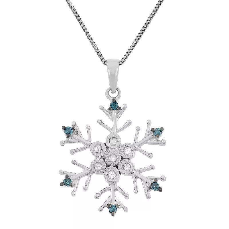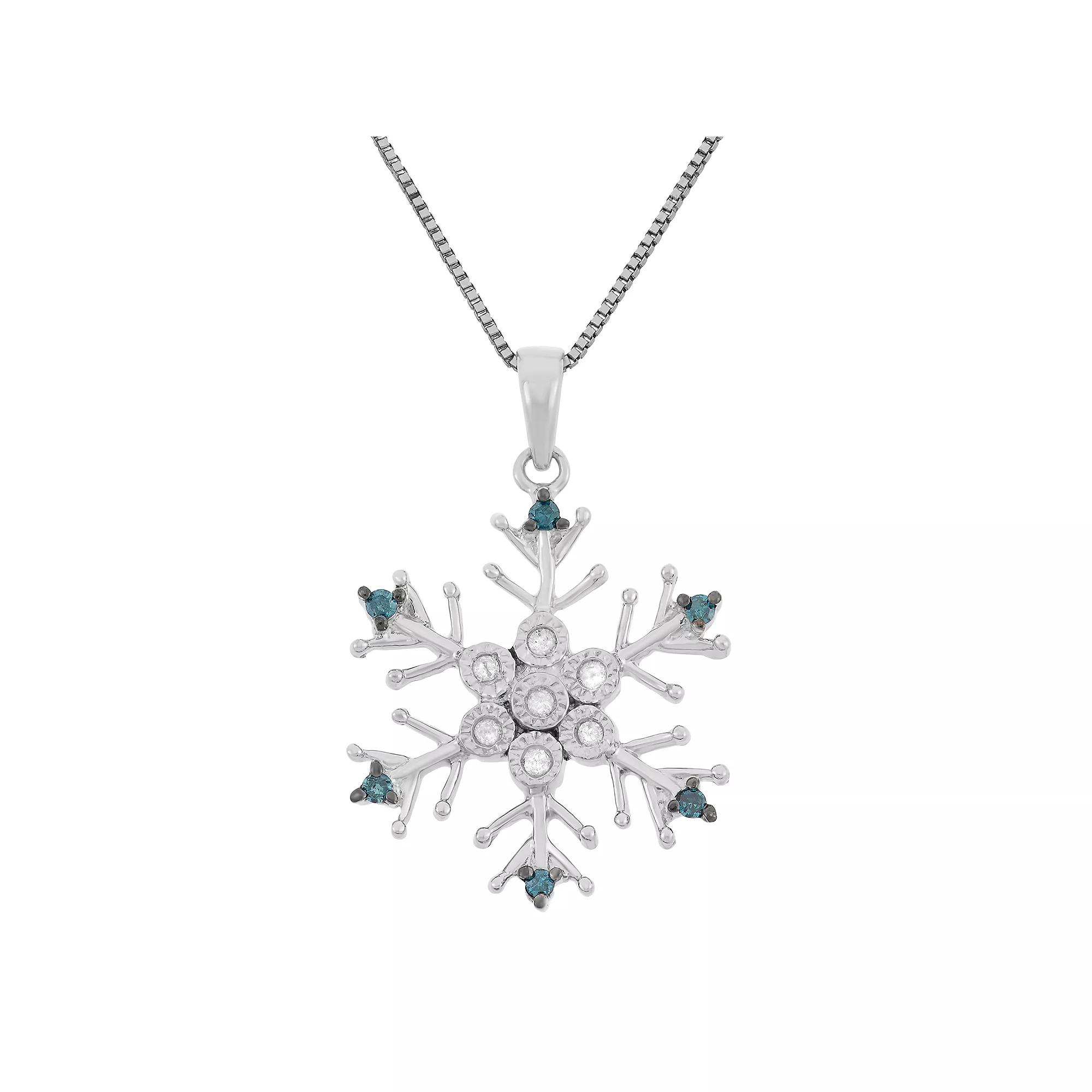 HDI 1/10 Carat T.W. Blue and White Diamond Sterling Silver Snowflake Pendant Necklace, Women's,