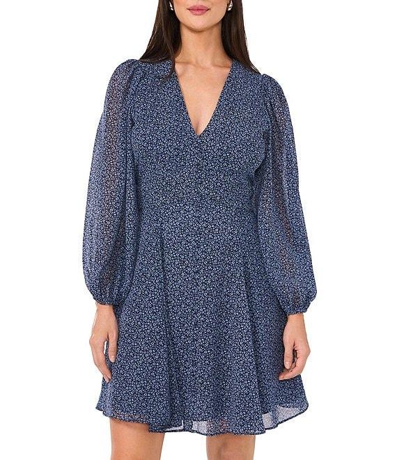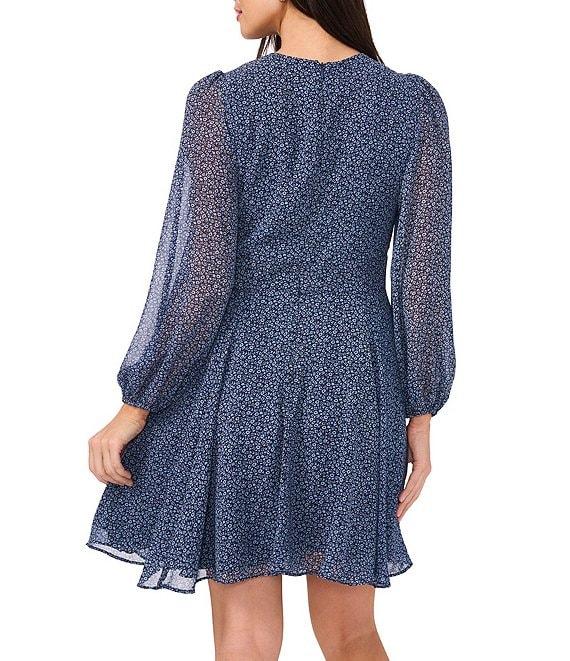 1. STATE Ditsy Floral Print V-Neck Sheer Blouson Long Sleeve Dress