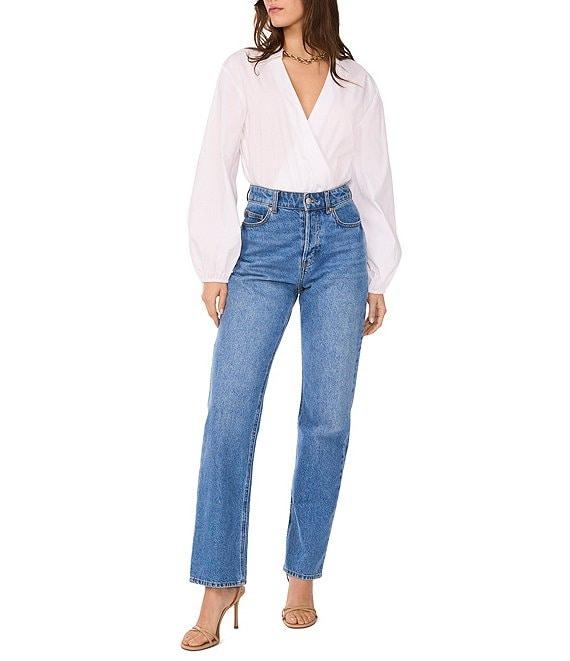 1. STATE V-Neck Collar Long Sleeve Wrap Front Bodysuit