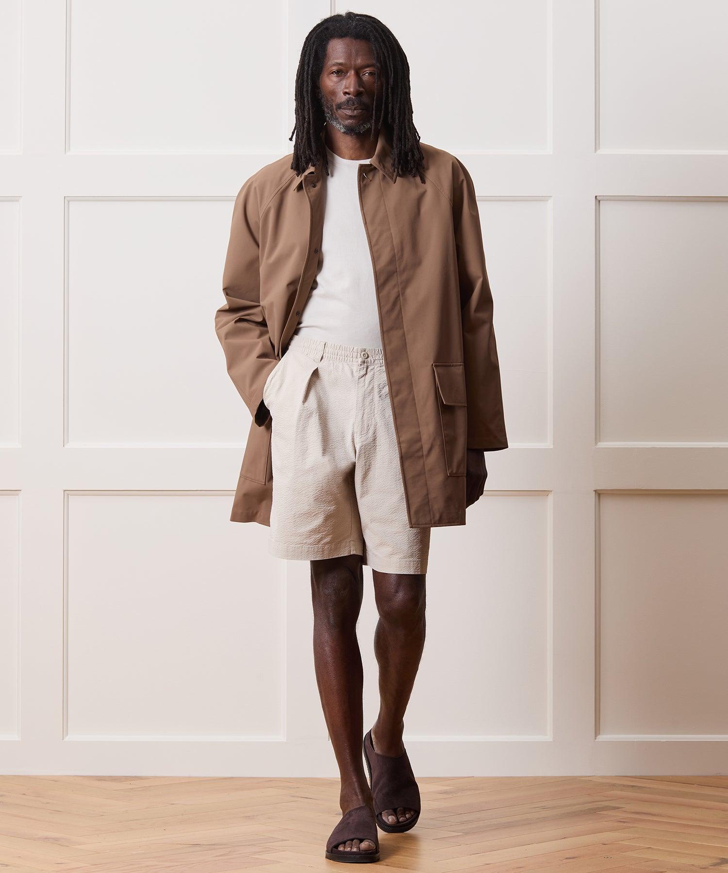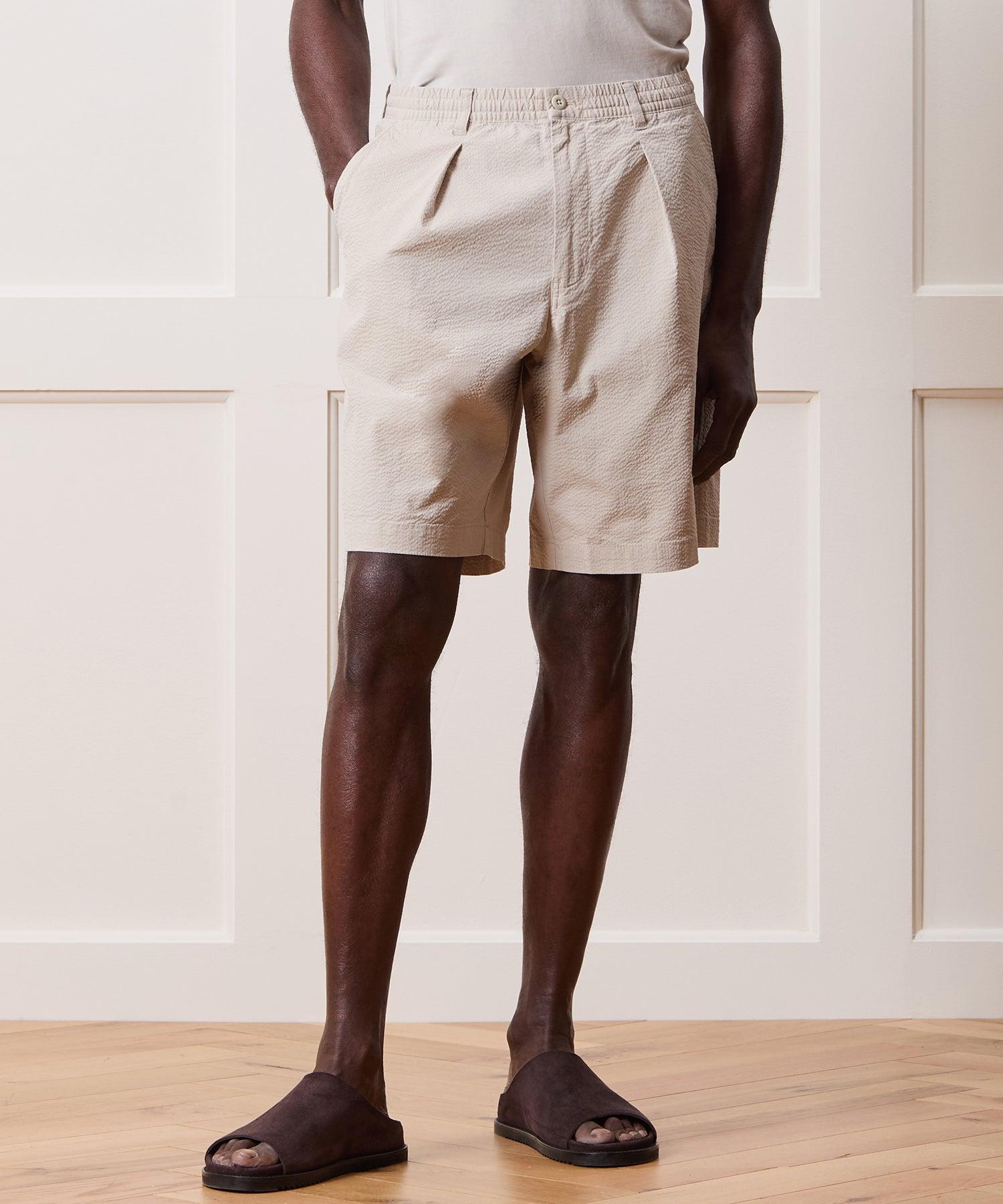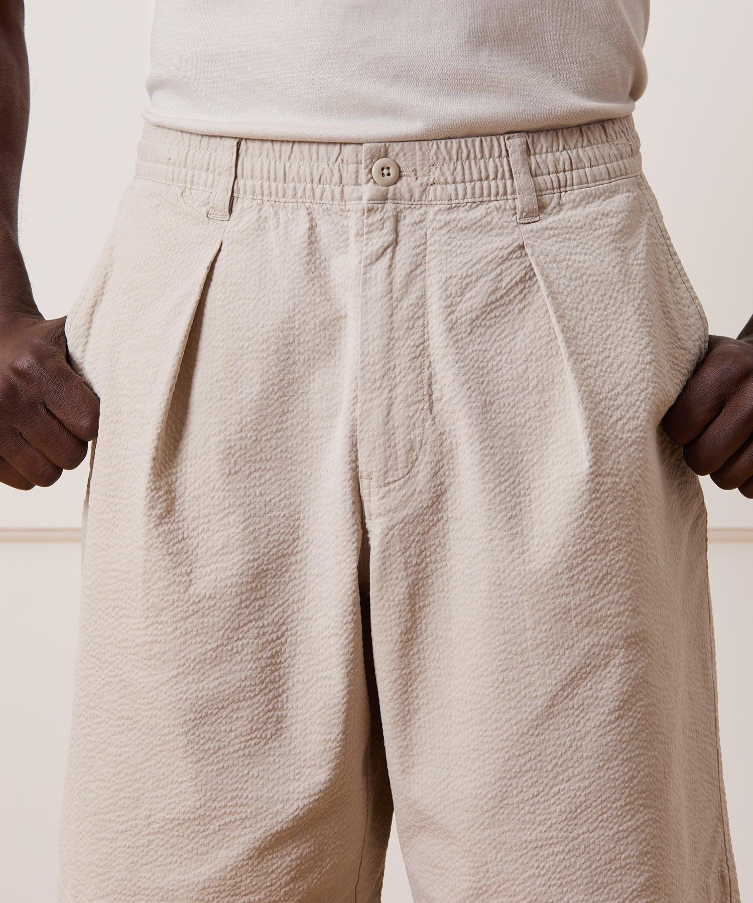 These easy-wearing shorts have a vintage vibe thanks to a full, relaxed fit and lengthy, 10” inseam, designed to hit right around the knee. They’re crafted from a stretch cotton fabric with all the rippled texture of a seersucker but without the typical stripe. A single reverse pleat at the front helps tame the extra volume for a full but tailored look. Try them with a tank and a short-sleeve Camp Collar or Cabana Shirt worn open, as a layer. 98% Cotton, 2% Elastane 10” Inseam Concealable Drawcord Elastic Waist Belt Loops Single Reverse Pleat Back Button-Through Welt Pockets Side Seam Hand Pockets 26” Leg Opening Imported Machine cold wash, do not bleach, dry flat, iron low. Style PA1700400