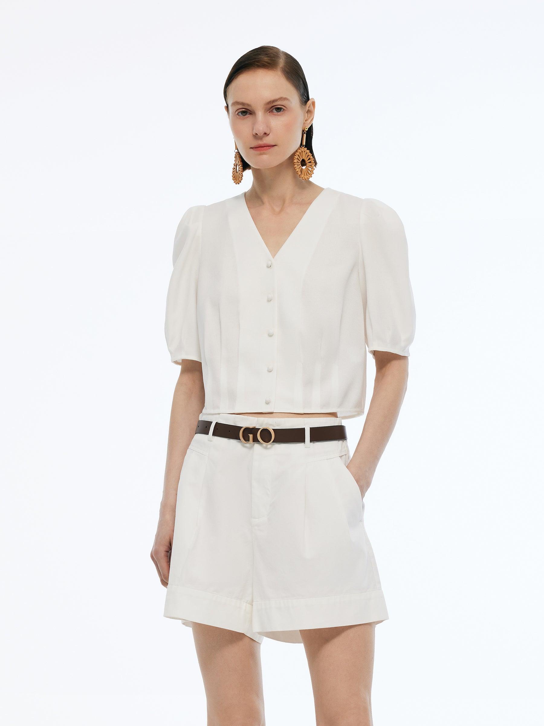 -100% Acetate -Machine washable -H-line fit Perfect for wearing alone or layered, this 100% acetate shirt delivers a cool, crisp touch against your skin. The H-line silhouette ensures comfort and ease, perfect for concealing unwanted lines while exuding confidence. Whether buttoned up for a formal meeting or left open