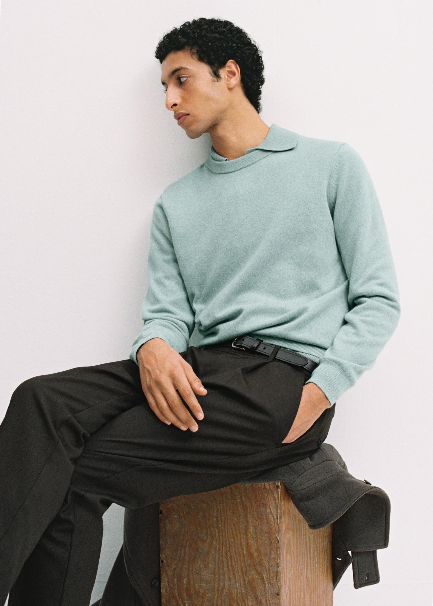 100% cashmere. Regular fit. Rounded neck. Long sleeve with elastic cuffs. Straight hem. The model is 6'3" and is wearing a size M. 100% cashmere fabric certified by GCS®, which guarantees responsible and sustainable cashmere production. The fiber is of high quality, carefully selected to maintain its purity, softness and warmth. Back length 28.54 in