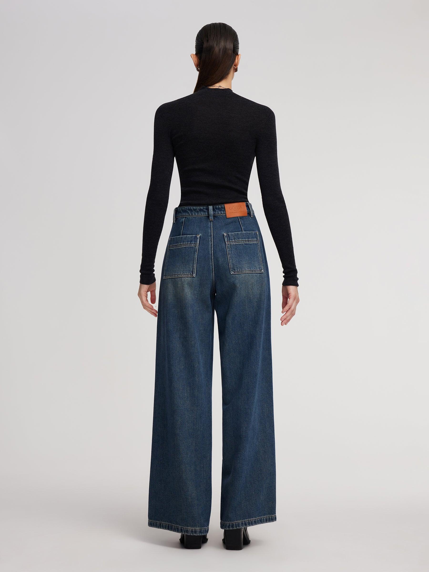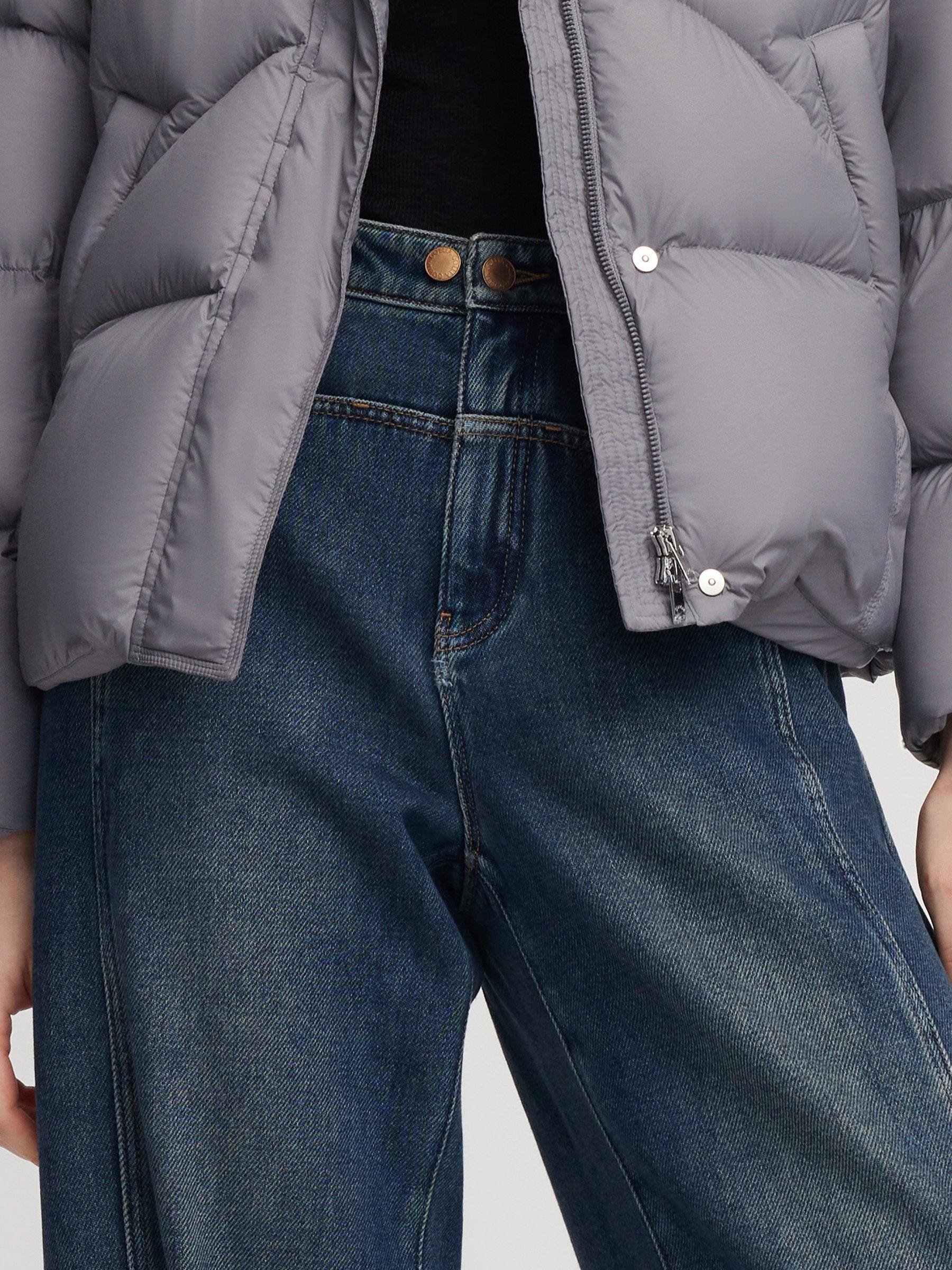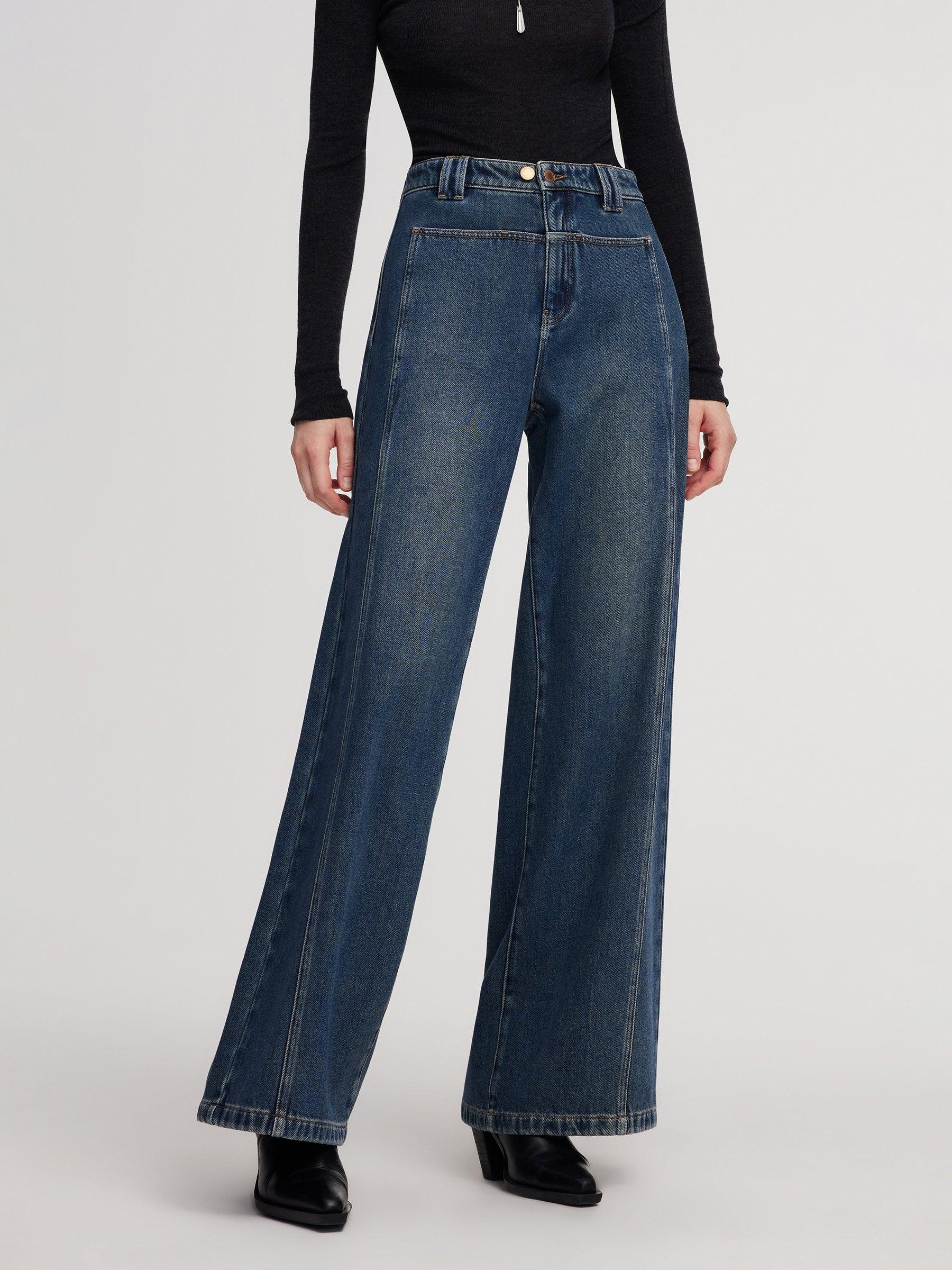 -100% Cotton denim -Straight wide leg jeans with a brushed interior -With pockets Crafted from 100% cotton denim with a soft brushed fleece lining, these jeans offer extra warmth and comfort without stiffness. The high-waisted, wide-leg silhouette elongates the legs and flatters various body types. Front seam detailing