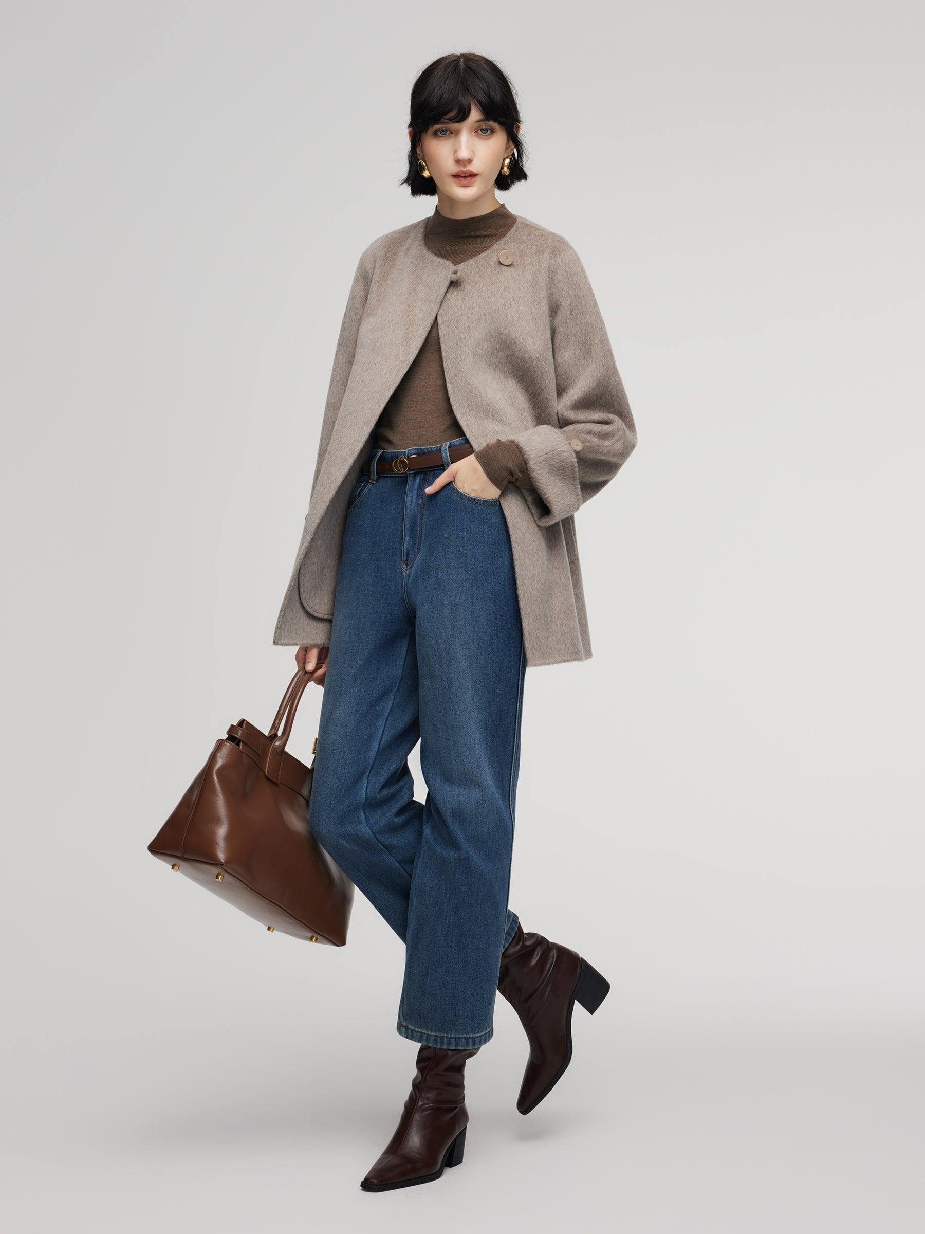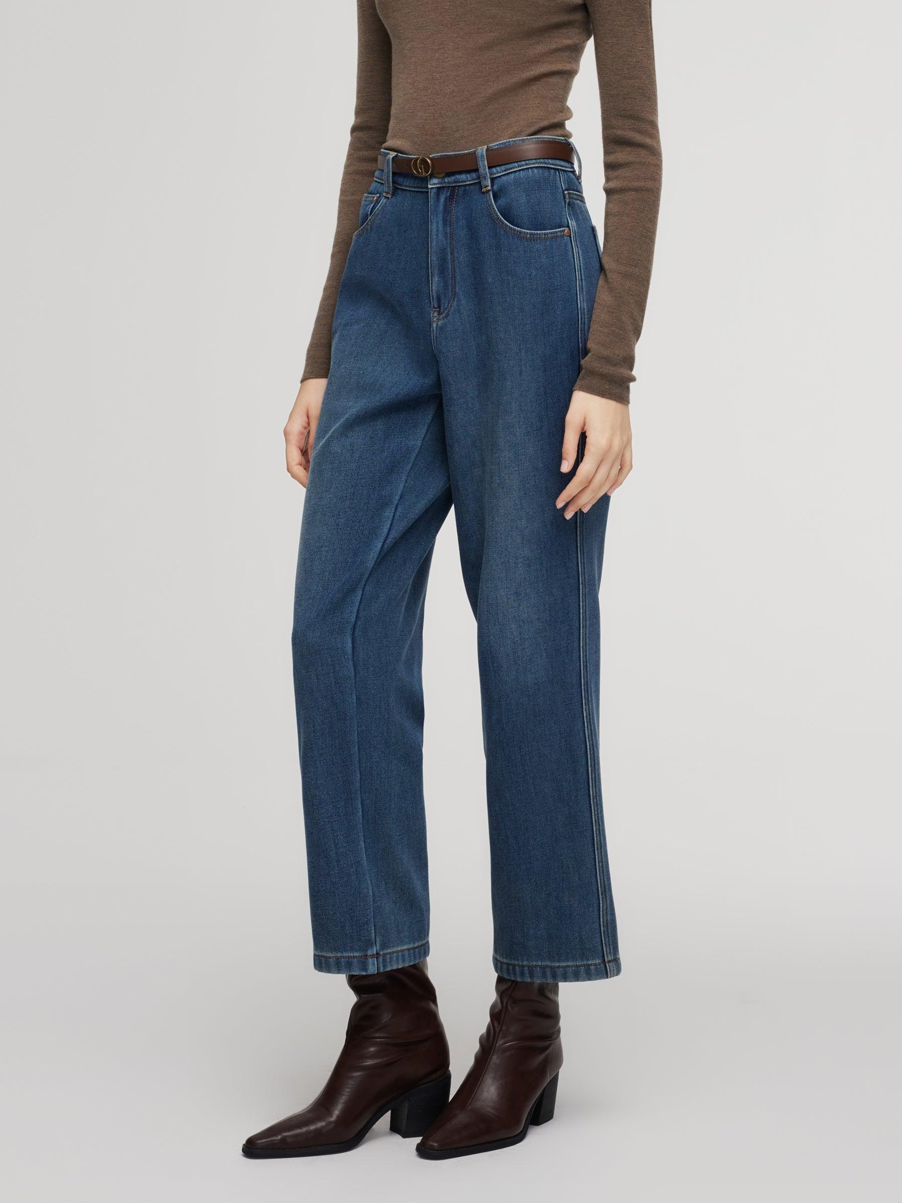 -100% Cotton -Fleece-lined -With adjustable buttons Crafted from 100% cotton denim with a cozy fleece lining, these jeans offer breathability and warmth—perfect for cool seasons without overheating. The tapered ankle-length straight-leg cut flatters pear-shaped figures by slimming hips and thighs. Forward side seams en