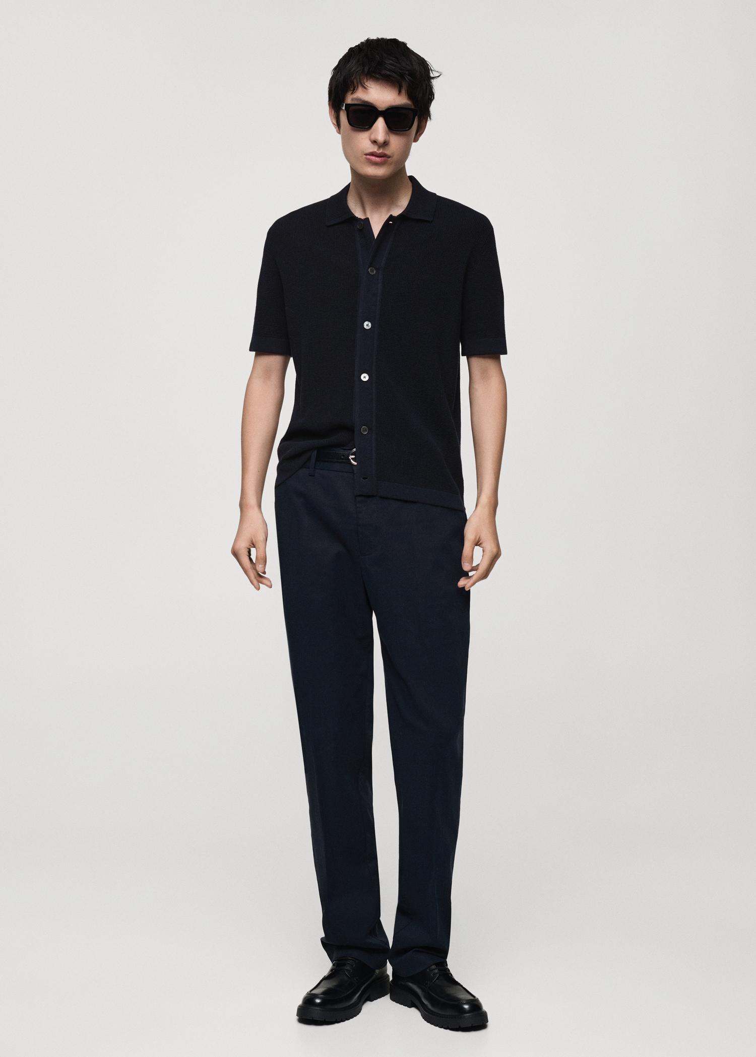 Regular fit. Fine knit fabric. Structured knitted fabric. Cable knit finish. Front closure with buttons. The model is 6'1" and is wearing a size M. Back length 28.54 in