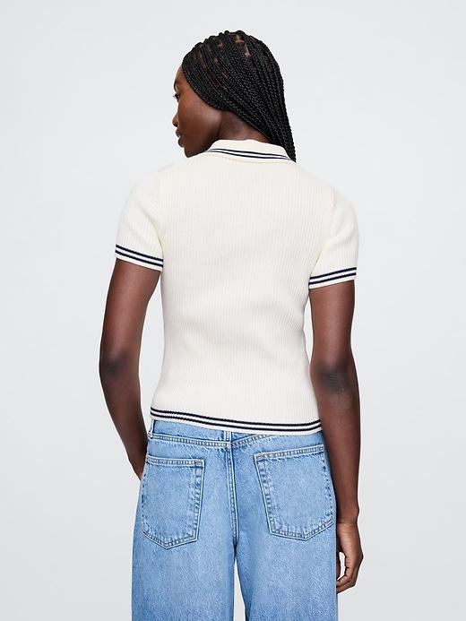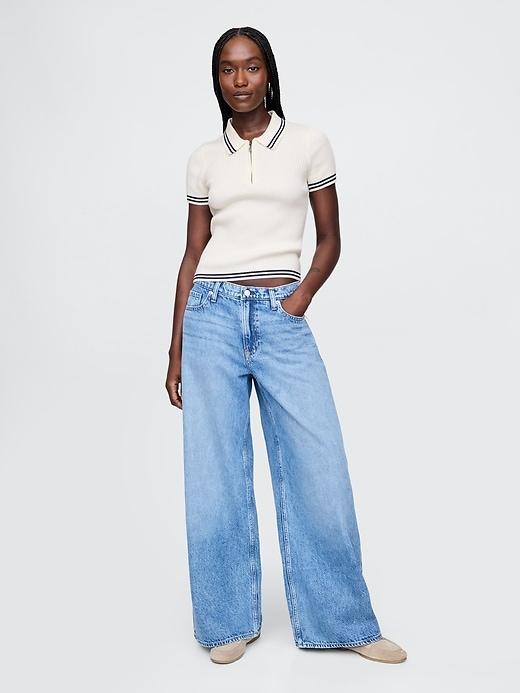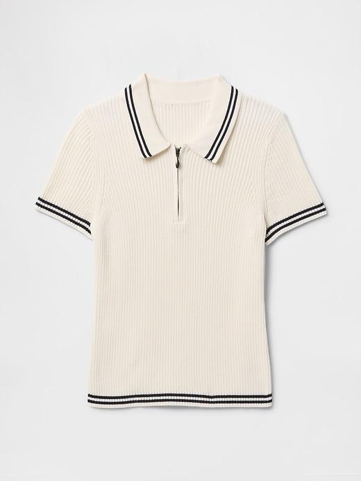 Soft cotton polo sweater. Polo collar with quarter-zip closure. Short sleeves. #744775