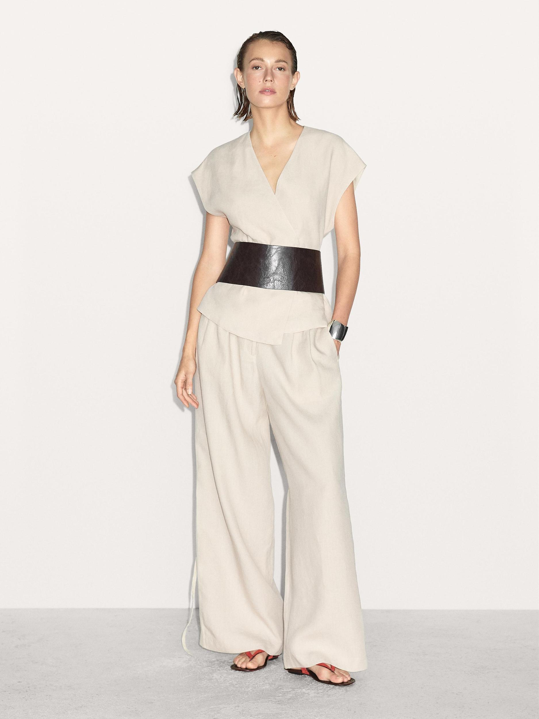 Waistcoat made of 100% linen fabric , V-neck , Hidden button closure, Cotton lining, Matching garment available, Includes belt