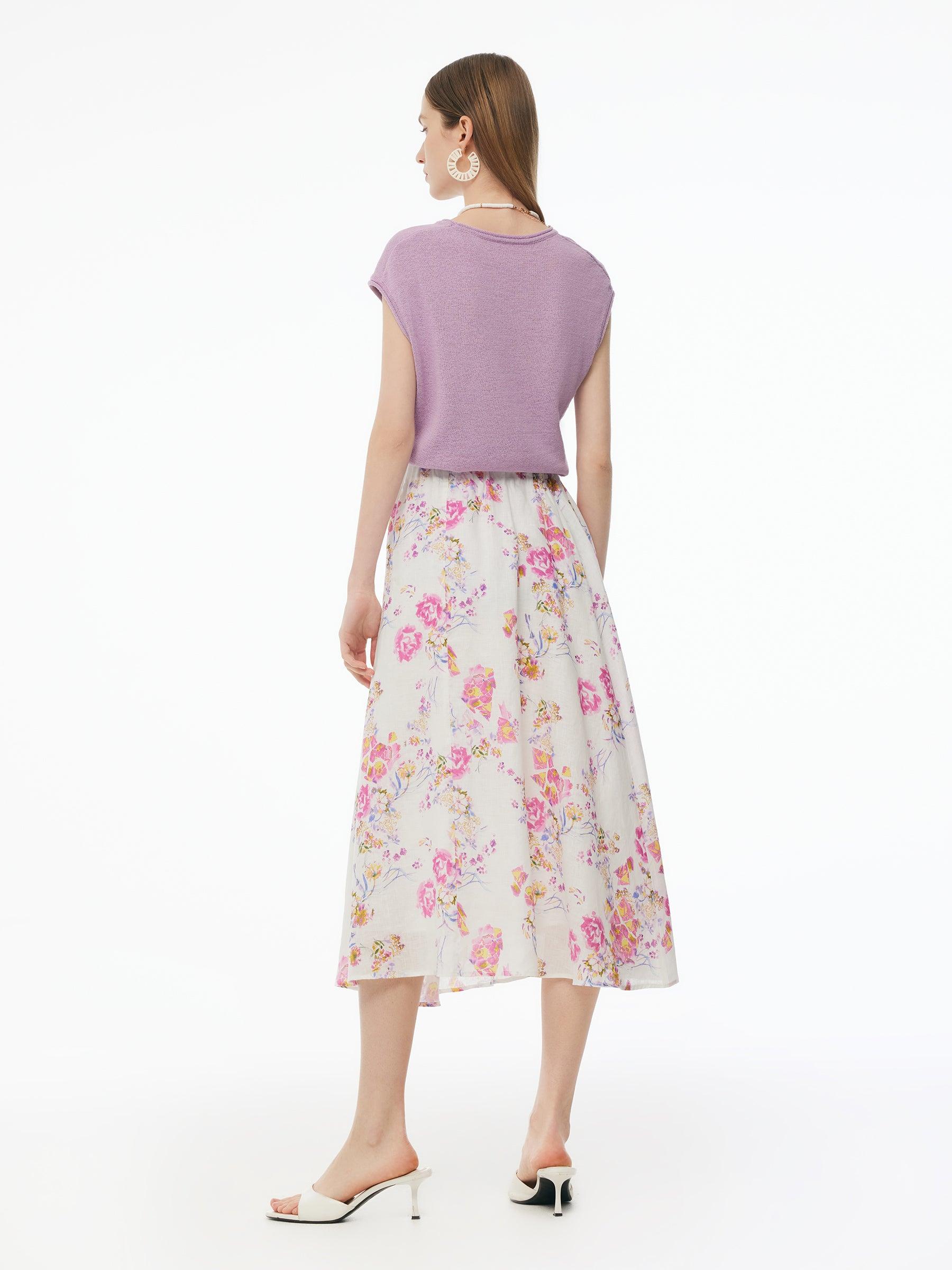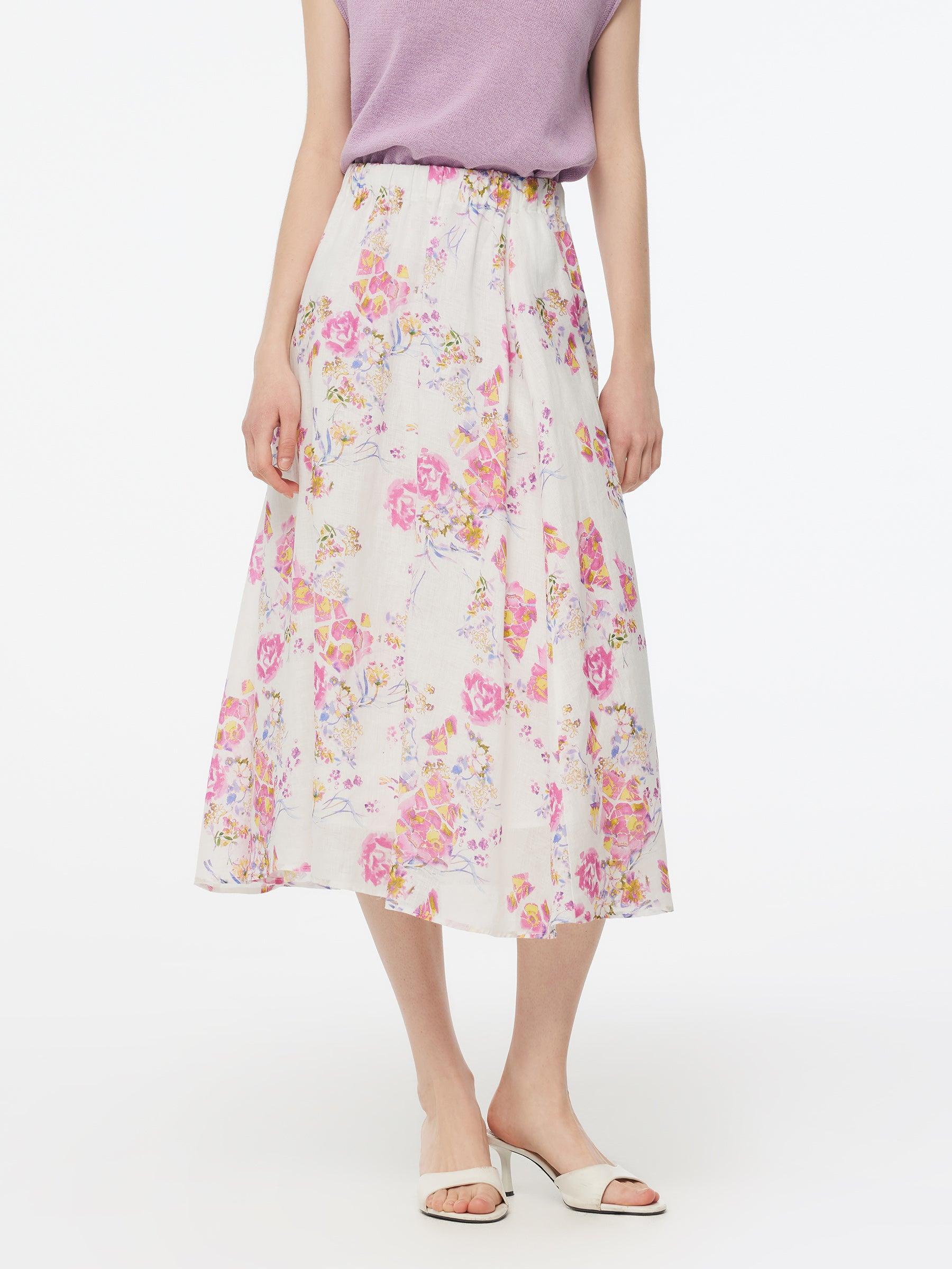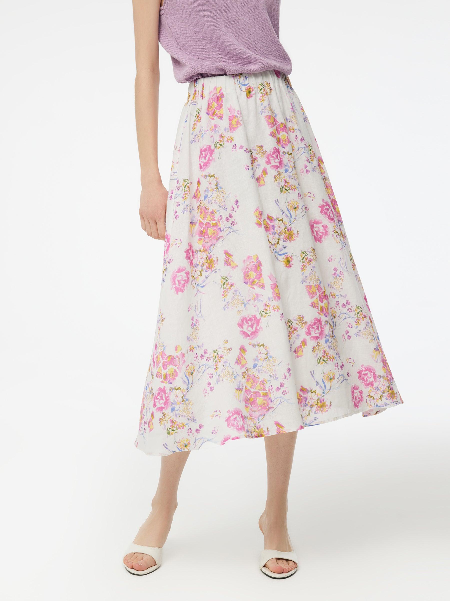 -100% Linen fabric -With elastic waistband -With lining Inspired by the mosaic art of Parque Guespaña, this 100% linen-made skirt whispers sustainability while its designer-inspired print captures a blooming rose garden. The A-line silhouette flatters all figures, and the full elastic waistband ensures ease of wear. Wi