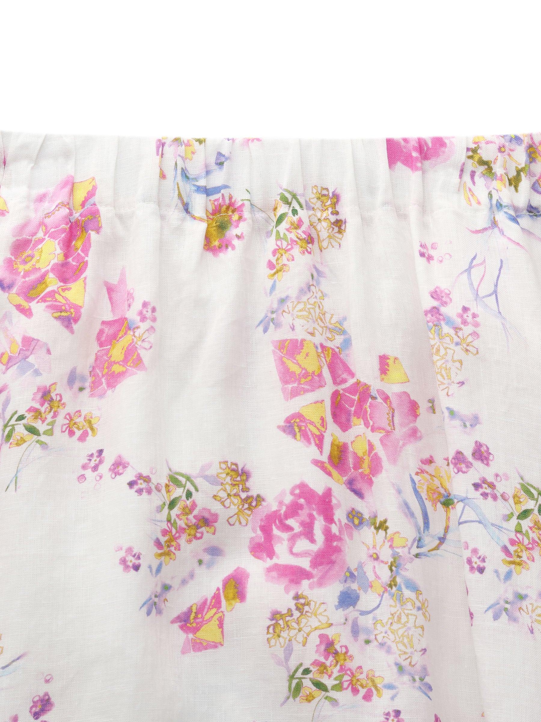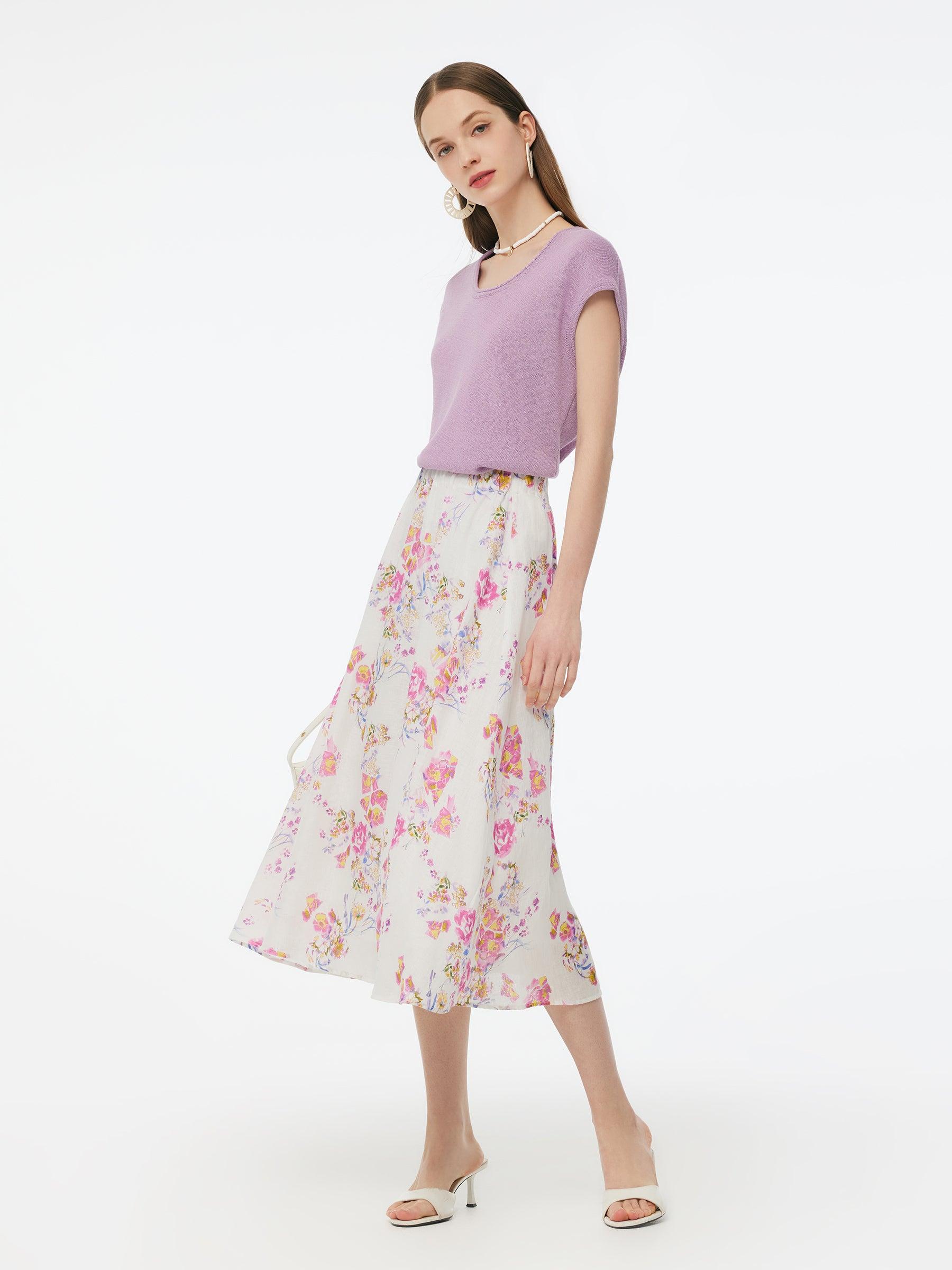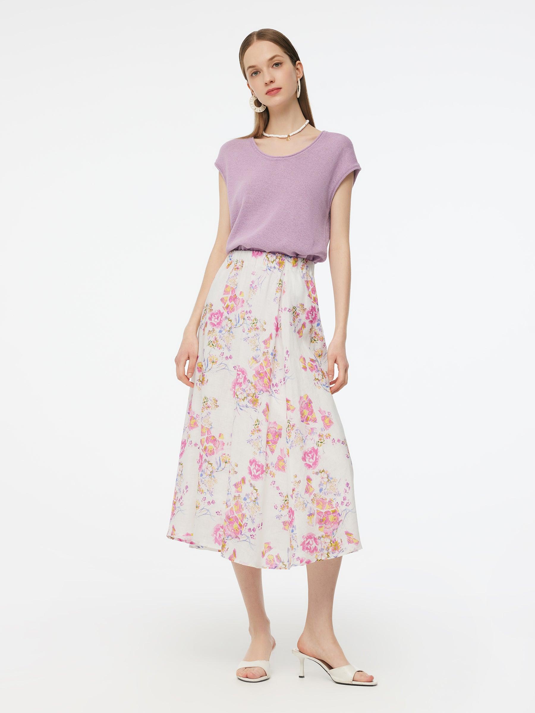 -100% Linen fabric -With elastic waistband -With lining Inspired by the mosaic art of Parque Guespaña, this 100% linen-made skirt whispers sustainability while its designer-inspired print captures a blooming rose garden. The A-line silhouette flatters all figures, and the full elastic waistband ensures ease of wear. Wi