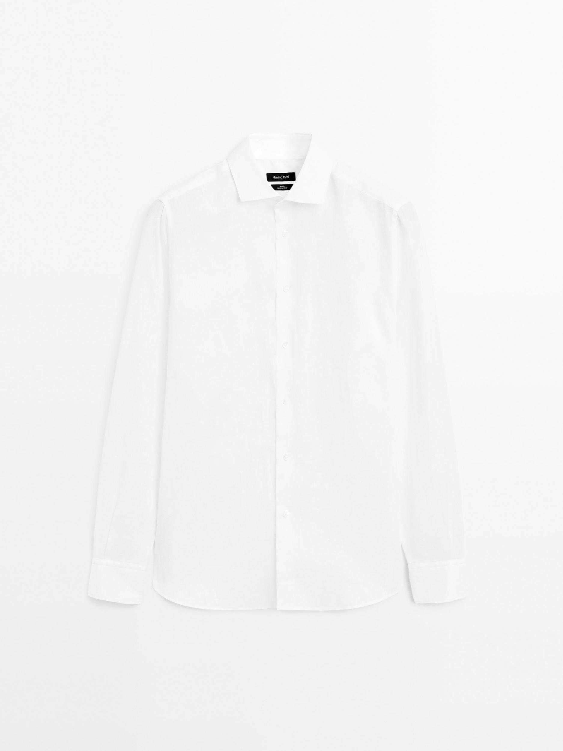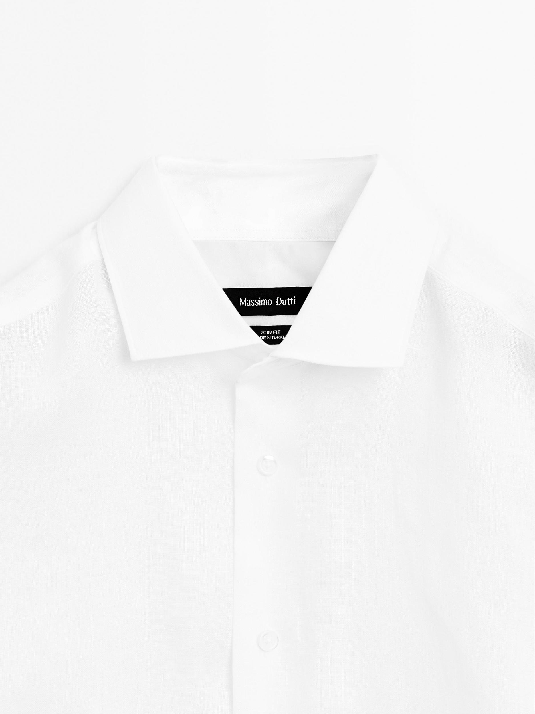Slim Fit shirt: this fit features a slightly fitted silhouette, snug in the torso, shoulders and arms, providing a more defined and slimming appearance, Long sleeves with buttoned cuffs, Shirt collar, Button-up front, Semi-sheer fabric