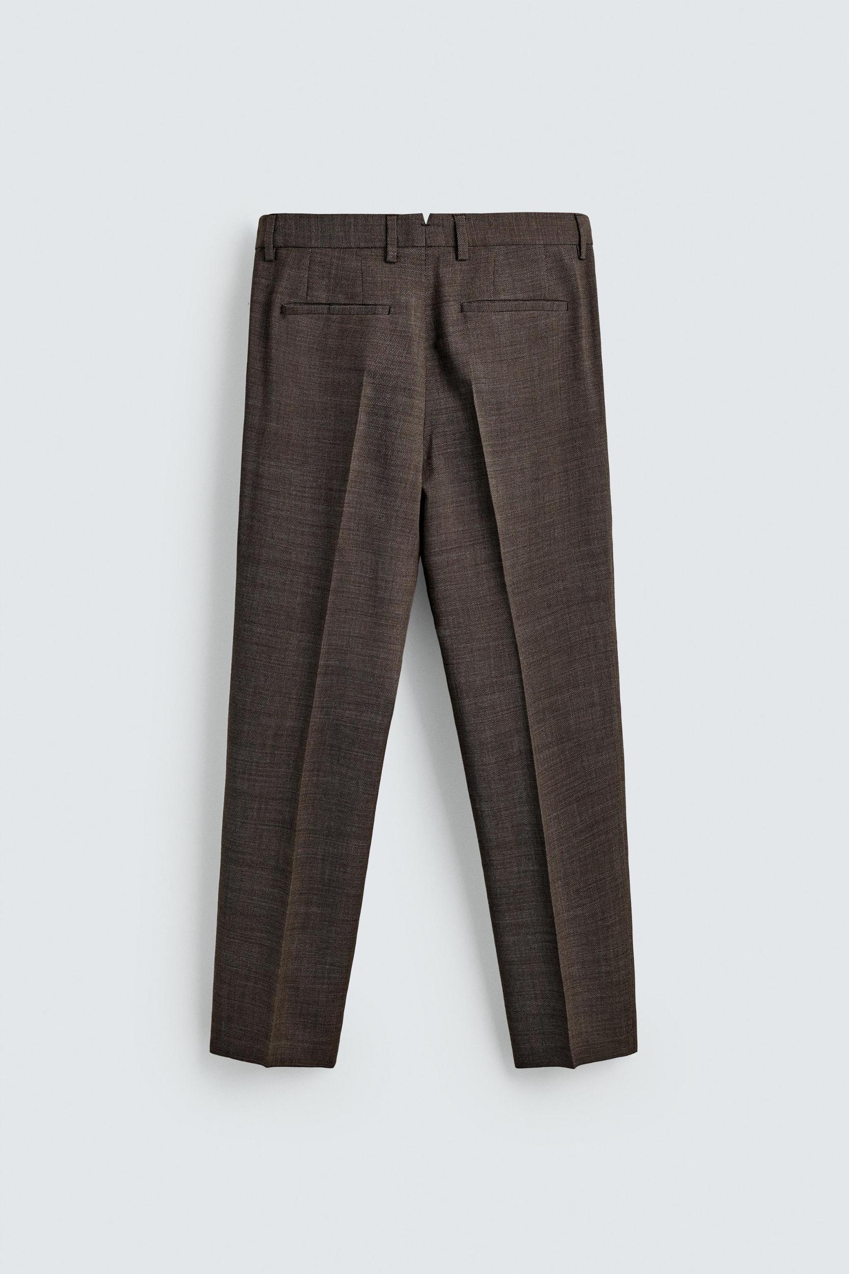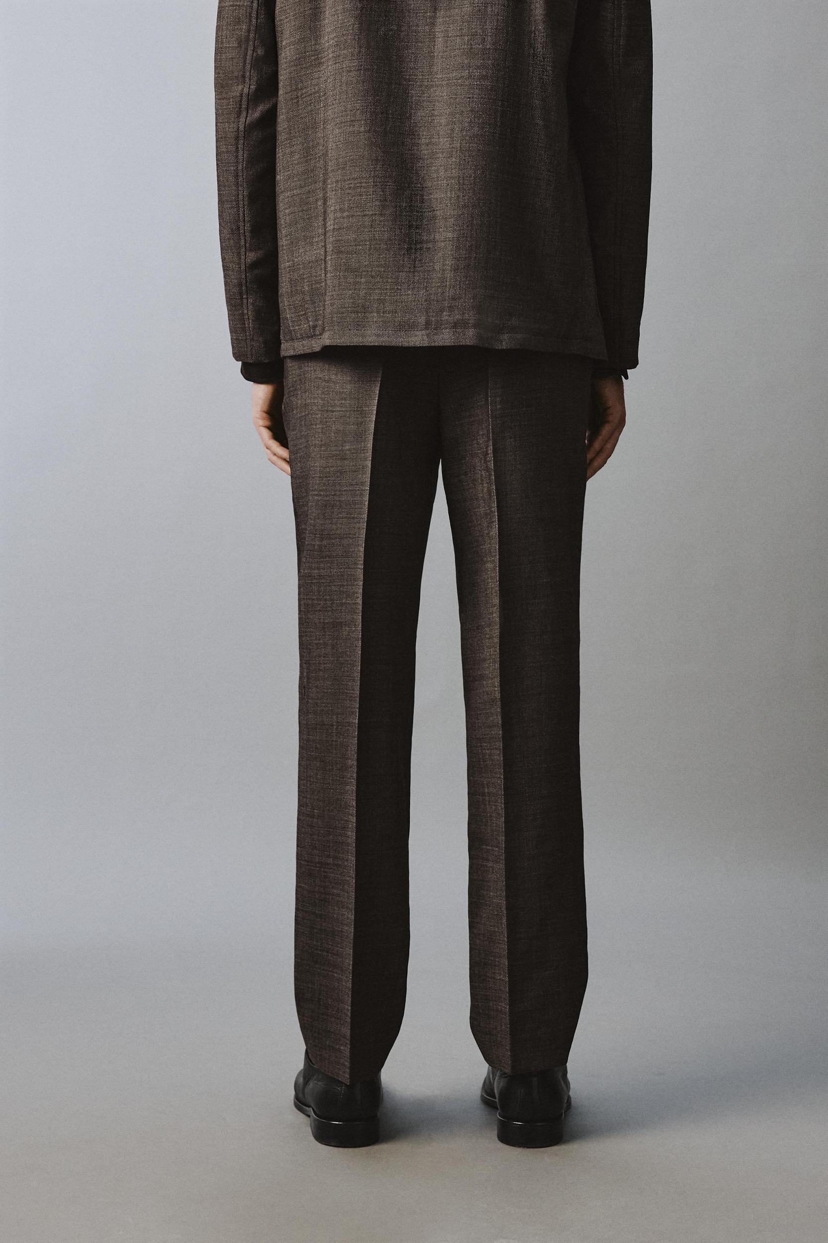 100% WOOL STRUCTURED PLEATED SUIT PANTS