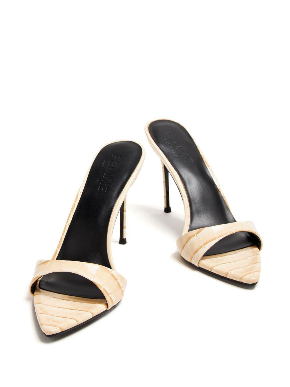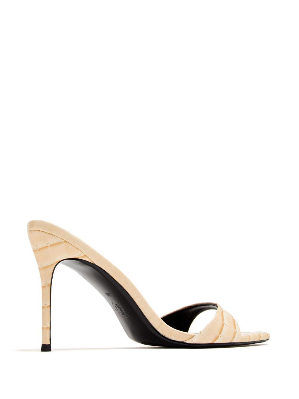 Femme La 100mm Kaia mules | Neutrals | exotic sand beige | faux leather | embossed crocodile effect | open point toe | single toe strap | branded insole | 10mm stiletto heel | faux-leather outsole | Artificial Leather/Artificial Leather/Artificial Leather | Heeled Sandals | Sandals | Heeled Mules | Mules | Shoes | Women