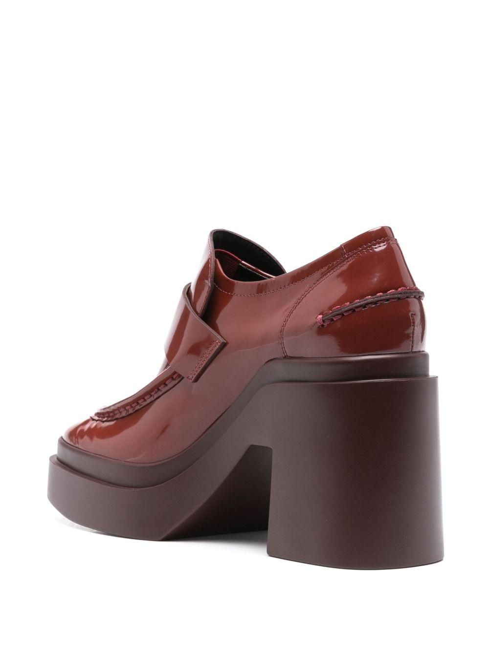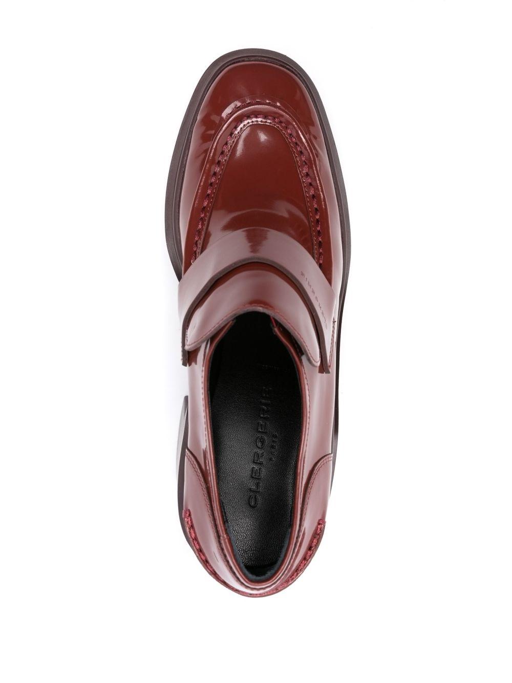 Clergerie 100mm Netta loafers | Red | tuscan red | calf leather | patent finish | slip-on style | debossed logo to the side | strap detailing | moc stitching | square toe | branded leather insole | 100mm high block heel | 35m platform sole | rubber outsole | Leather | Heeled Pumps | Pumps | Loafers | Shoes | Women