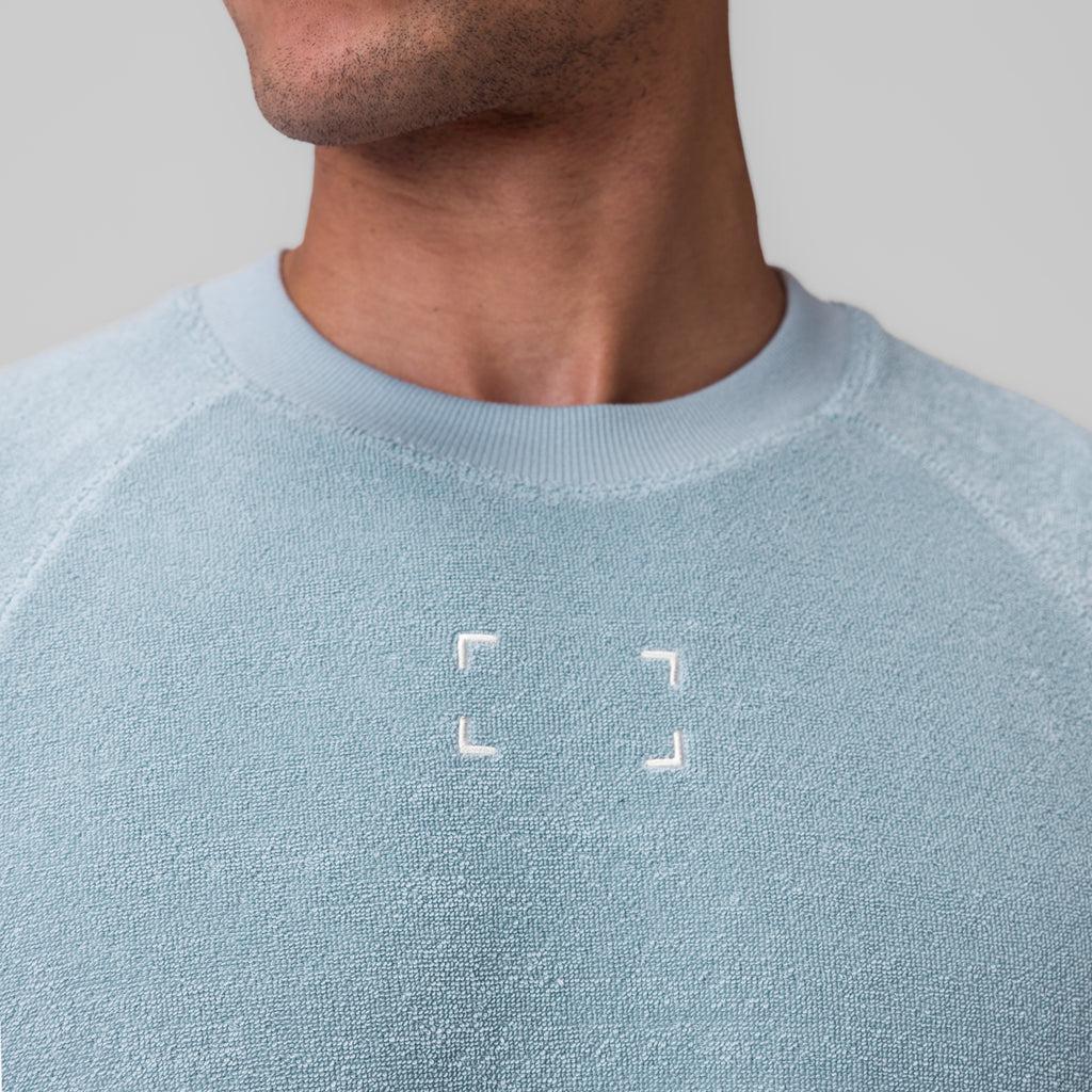 Oversized cutoff designed for recovery and post-training comfort. Constructed from soft, breathable Towel Terry with a textured finish for relaxed wear. Features binding at the sleeves and hem, reflective heat-press vents for airflow, and an embroidered back logo down the spine.