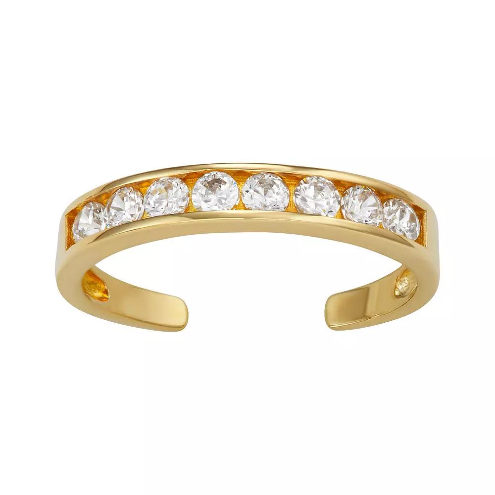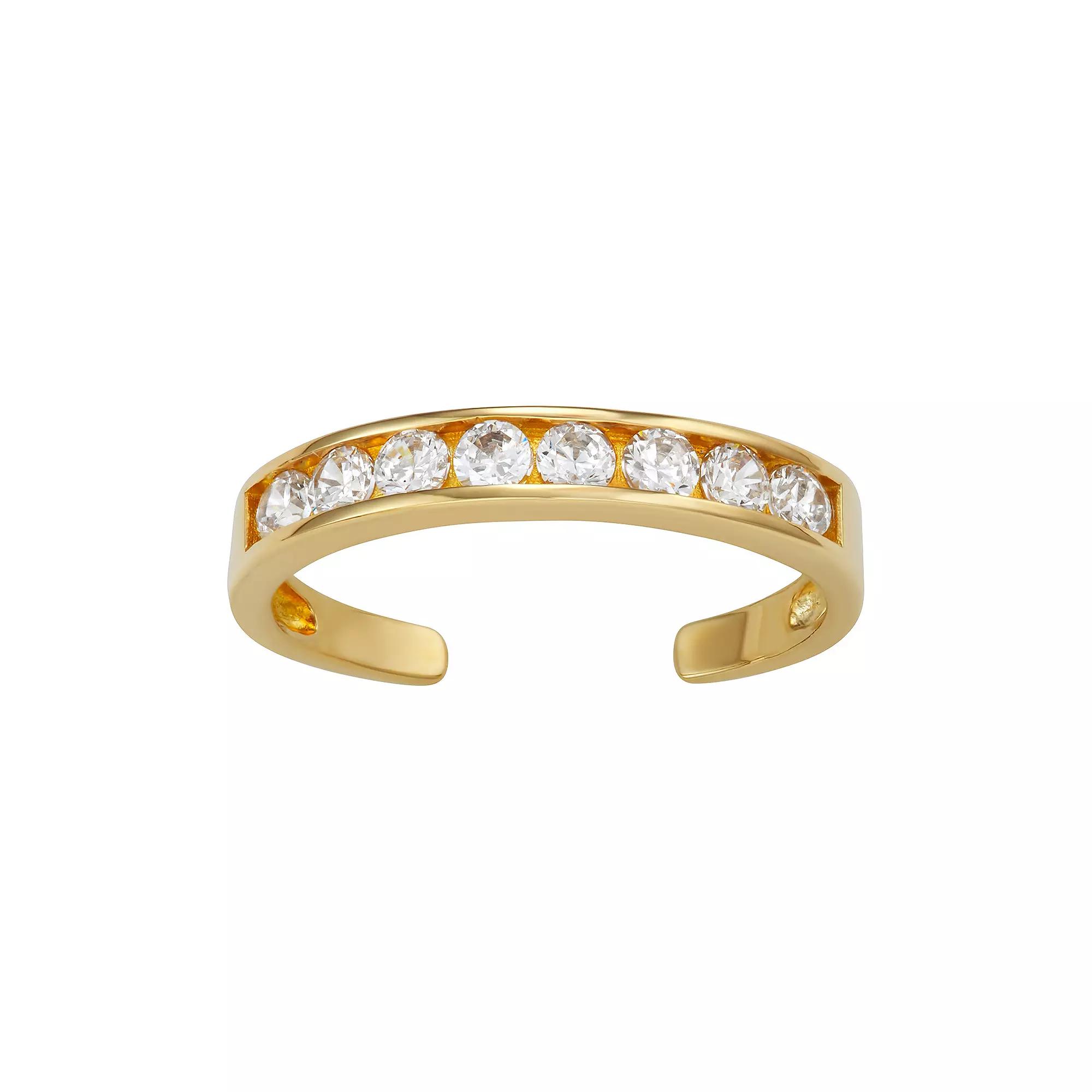 Lined with dazzling cubic zirconia gemstones, this 10k gold toe ring is a stylish accent to your look. Lined with dazzling cubic zirconia gemstones, this 10k gold toe ring is a stylish accent to your look. Width: 2.5 mm Size: adjustable Metal: 10k gold Finish: polished Packaging: boxed STONE DETAILS Stone type: cubic zirconia Shape: round Setting: nick Please note, due to the high value of this item, a signature may be required upon delivery. Size: One Size. Gender: female. Age Group: adult.