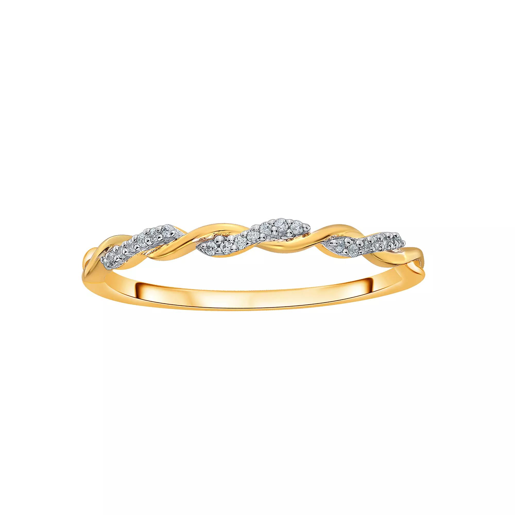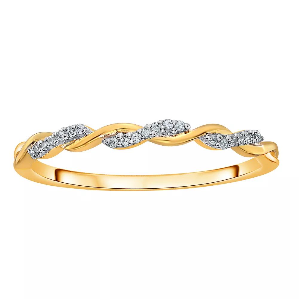 Worn by itself or with other rings, this diamond crisscross stackable ring is a stylish way to personalize your look. Worn by itself or with other rings, this diamond crisscross stackable ring is a stylish way to personalize your look. Width: 2 mm Metal: 10k gold Finish: polished Packaging: boxedDIAMOND DETAILS Total weight: less than 1/10 ct. Shape: round Setting: prong Diamond weights are approximate. Diamond total weights may vary between .01 and .08 ct. Some diamonds have fewer than 17 facets. Gemstones may have been treated to enhance their appearance. Special care may be required. Please visit our Gemstone Treatment & Special Care Guide for more information. Image(s) may be enlarged to show detail. Please note, due to the high value of this item, a signature may be required upon delivery. Size: 6. Color: Yellow. Gender: female. Age Group: adult.