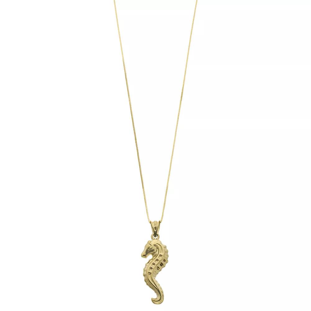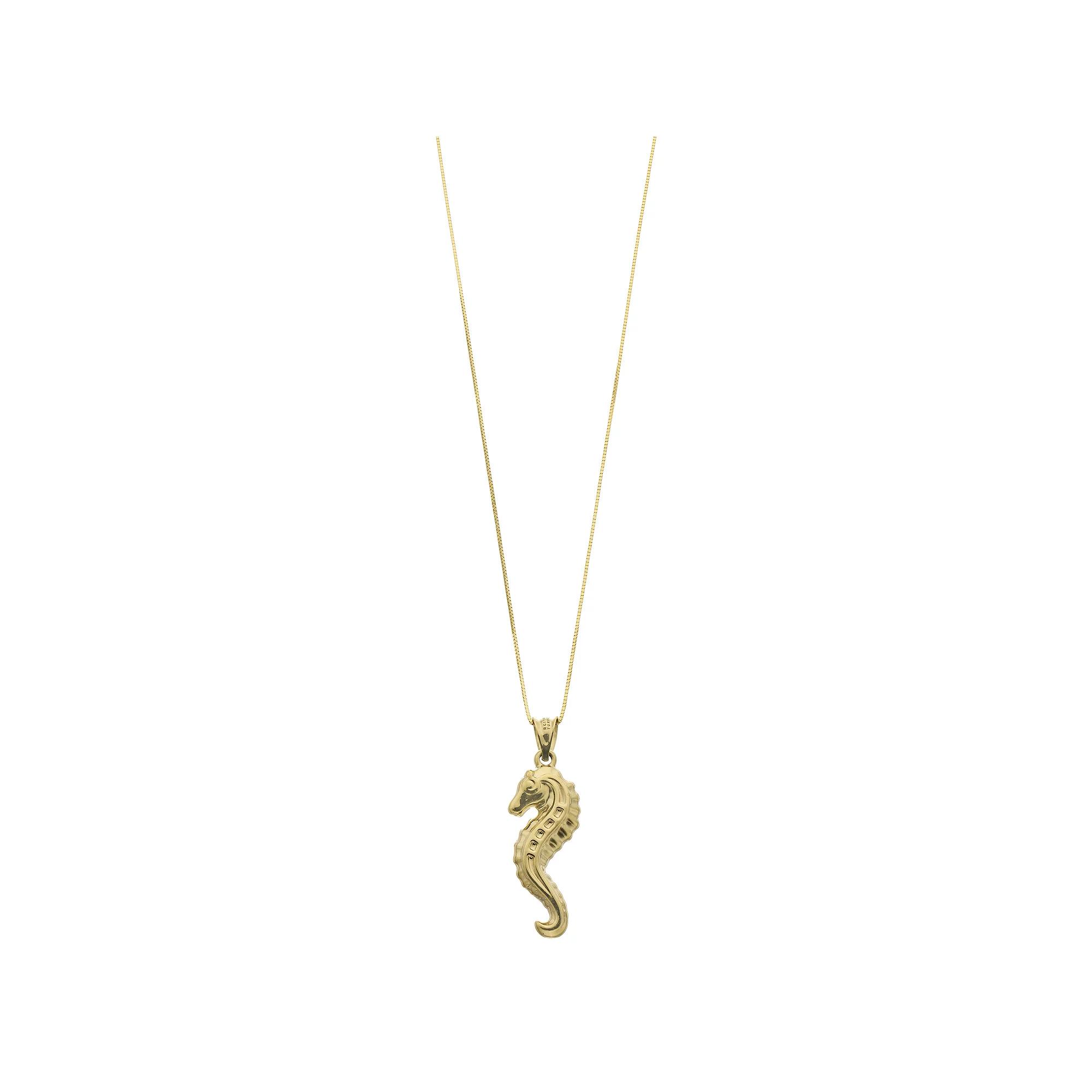 You'll love the charming style of this 10k Gold Seahorse Pendant Necklace. Click on this JEWELRY & WATCHES GUIDE to learn about fit, styles, materials and more! You'll love the charming style of this 10k Gold Seahorse Pendant Necklace. Click on this JEWELRY & WATCHES GUIDE to learn about fit, styles, materials and more! FEATURES Pendant dimensions: 27 mm x 9.3 mm Chain length: 18 in. Chain type: box Clasp: spring-ring Metal: 10k gold Finish: polished Packaging: boxed Nickel free Size: 18". Gender: female. Age Group: adult.