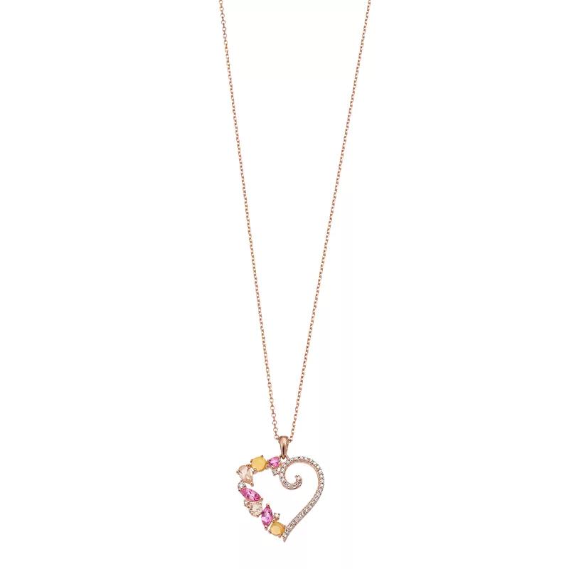 LeRose by Lexi and Rose 10k Rose Gold 1/6 Carat T.W. Diamond, Opal, Tourmaline, & Morganite Heart Pendant Necklace, Women's,