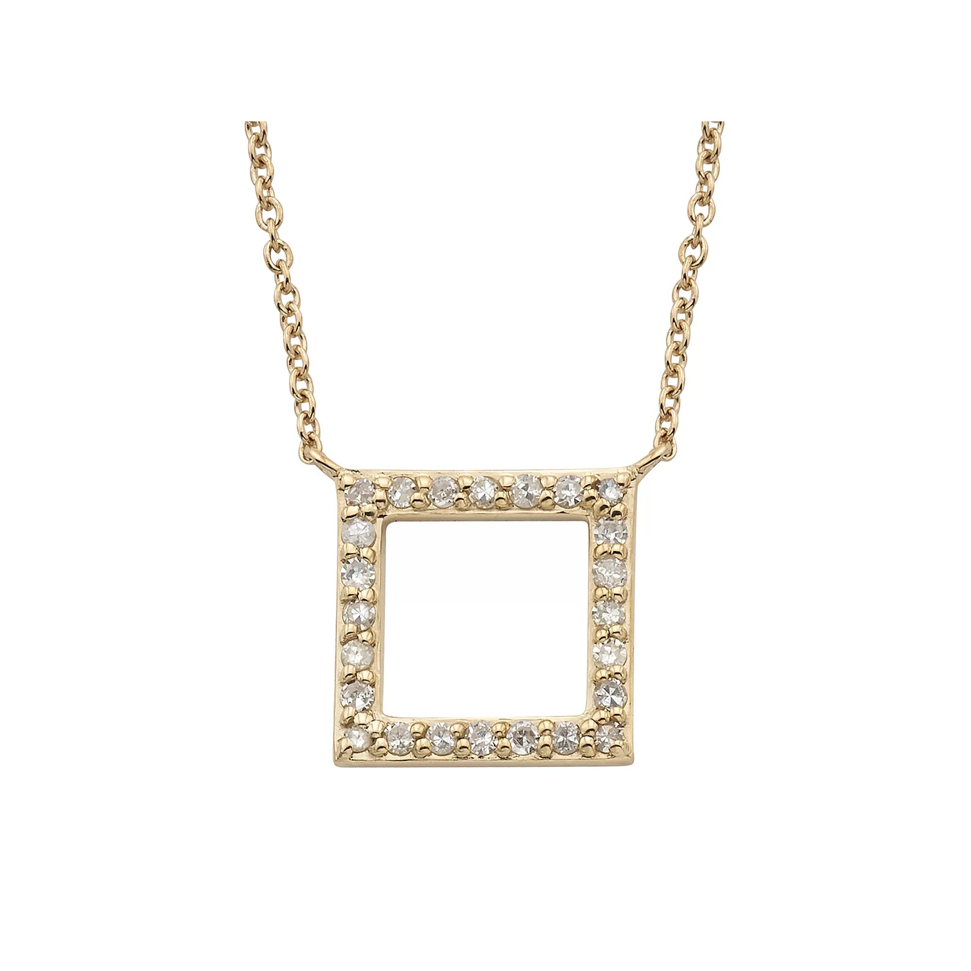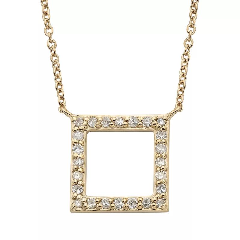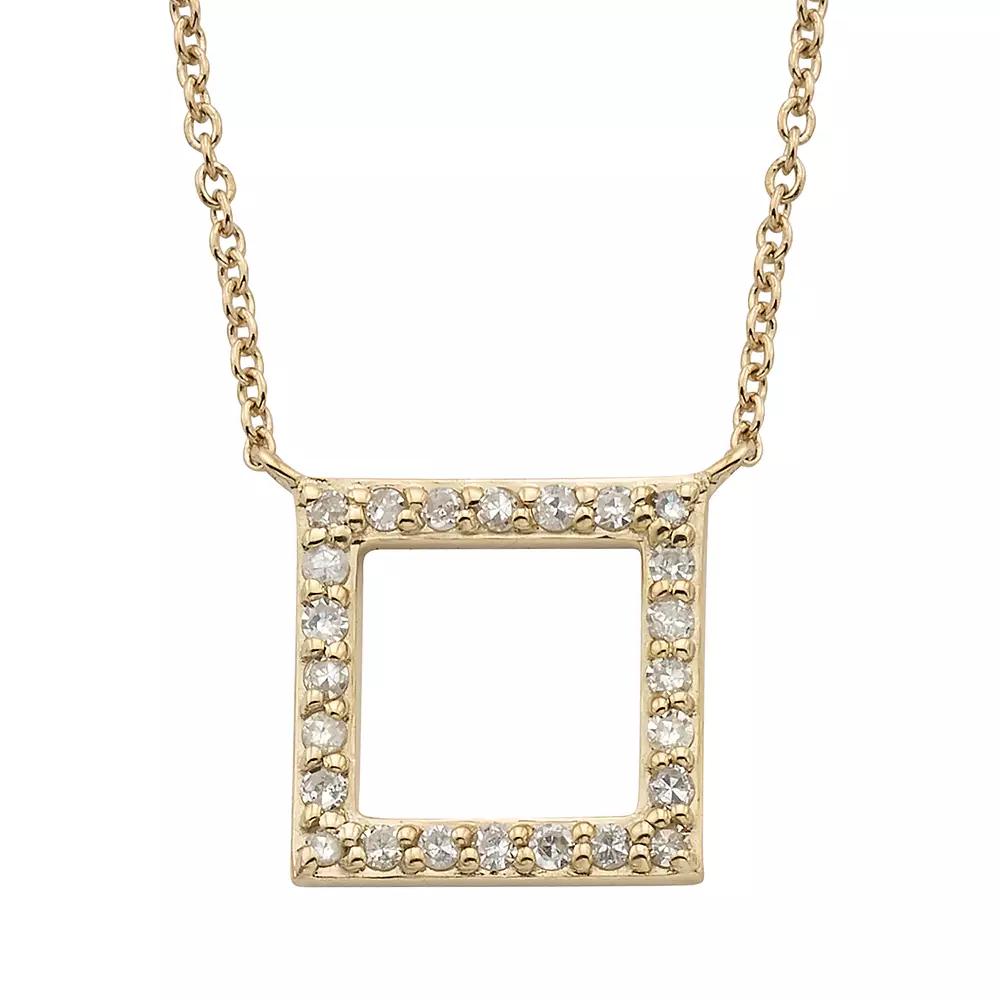 Elegance is easy when you wear this diamond necklace. Elegance is easy when you wear this diamond necklace. Packaging: boxed Chain type: cable Pendant: 10 mm x 10 mm Base material: 10k white gold, 10k gold, 10k rose gold Necklace length: 18 inches Plating: rhodium Finish: polished Nickel freeDIAMOND DETAILS Setting: micro-pave, micro-prong Total carat weight: 1/6 ct. Color grade: I Clarity: I2 Gemstones may have been treated to enhance their appearance. Special care may be required. Please visit our Gemstone Treatment & Special Care Guide for more information. Size: 18. Gender: female. Age Group: adult.