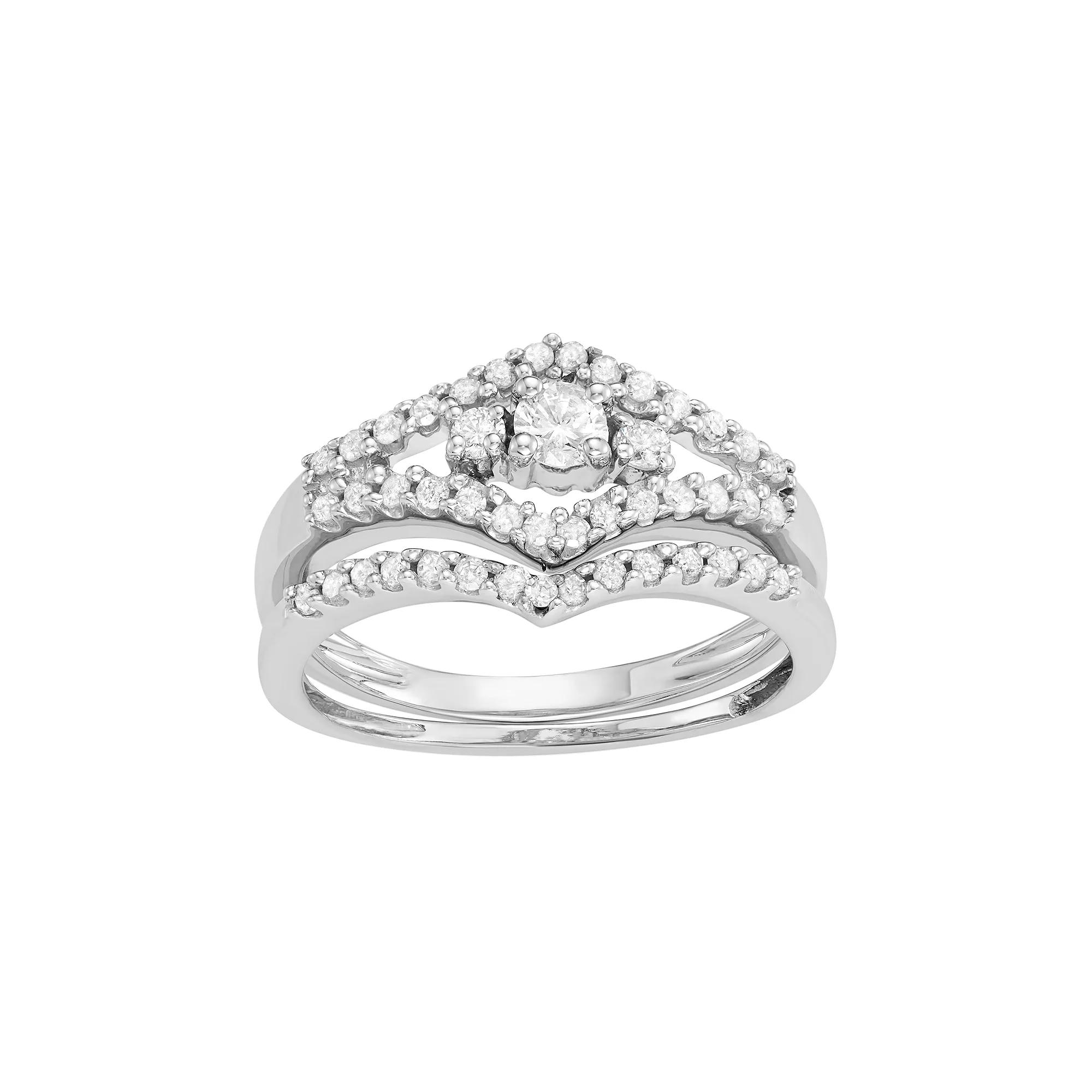 HDI 10k White Gold 1/2 Carat T.W. Diamond Engagement Ring Set, Women's,