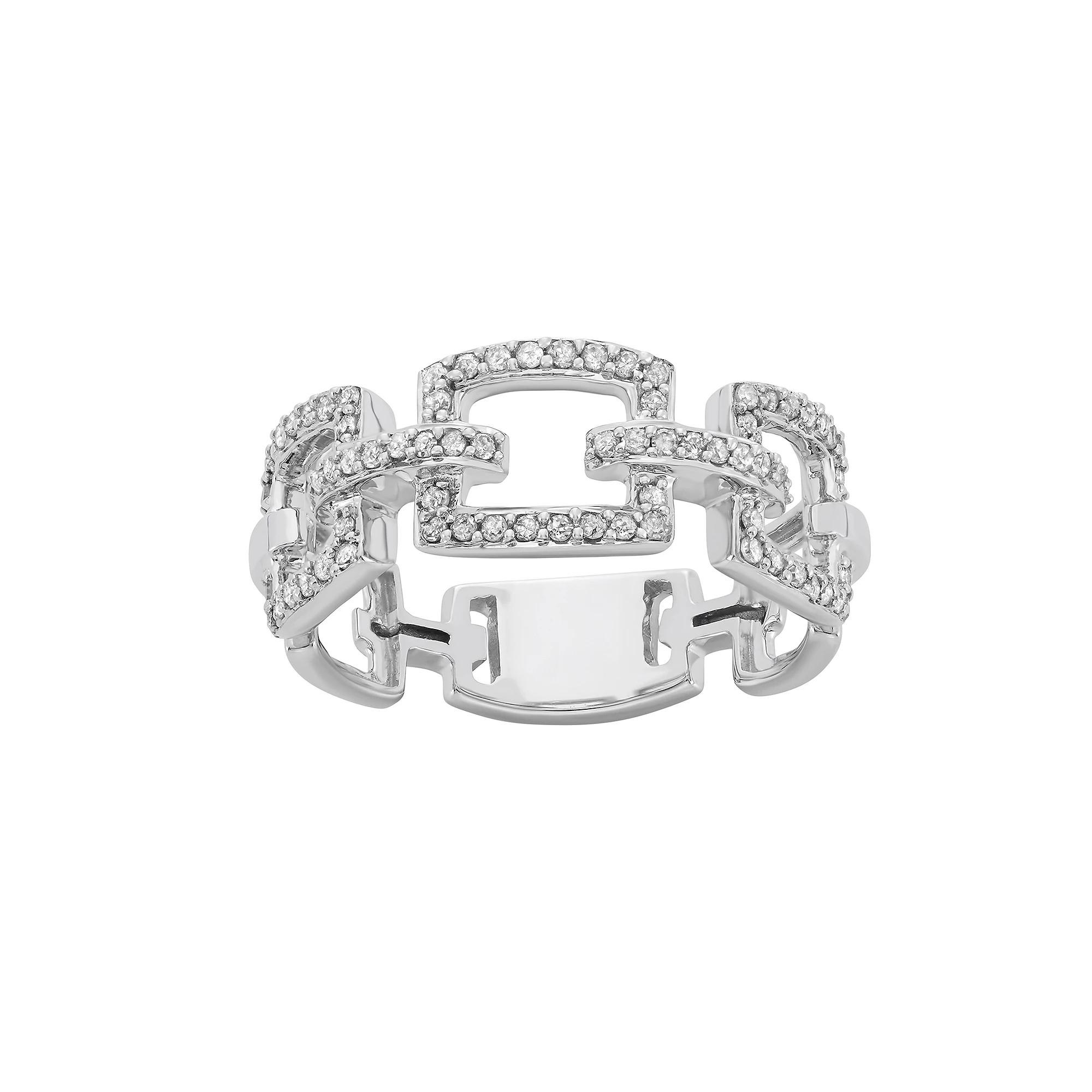This gorgeous 10k white gold diamond large link ring is the perfect way to finish any outfit. Width: 8.25 mm Metal: 10k white gold Plating: rhodium Finish: polished Packaging: boxedDIAMOND DETAILS Total weight: 1/3 ct. Shape: round Setting: prong Diamond weights are approximate. Diamond total weights may vary between .01 and .08 ct. Some diamonds have fewer than 17 facets. Gemstones may have been treated to enhance their appearance. Special care may be required. Please visit our Gemstone Treatment & Special Care Guide for more information. Image(s) may be enlarged to show detail. Please note, due to the high value of this item, a signature may be required upon delivery. Size: 9. Gender: female. Age Group: adult.