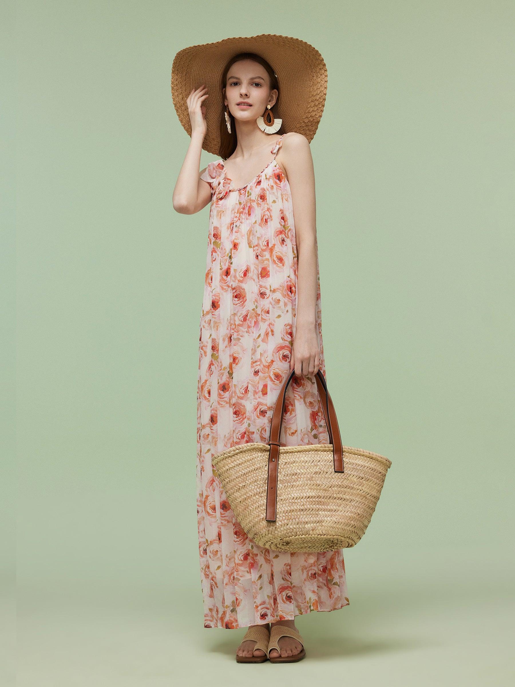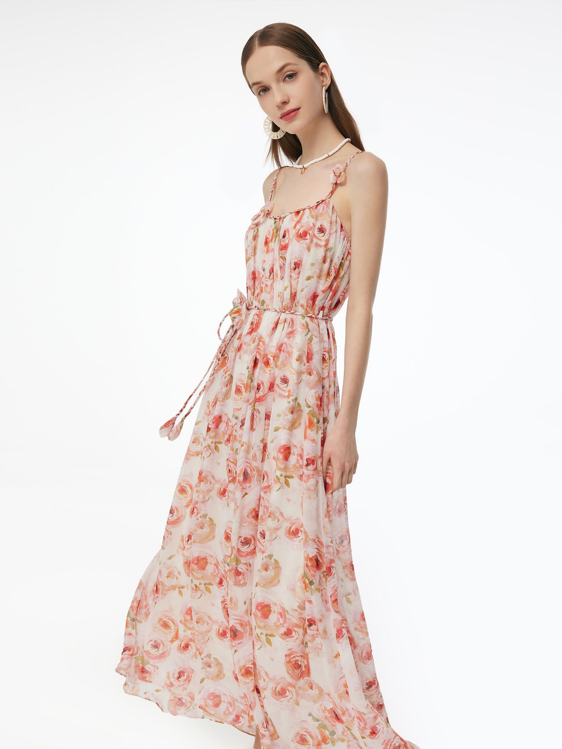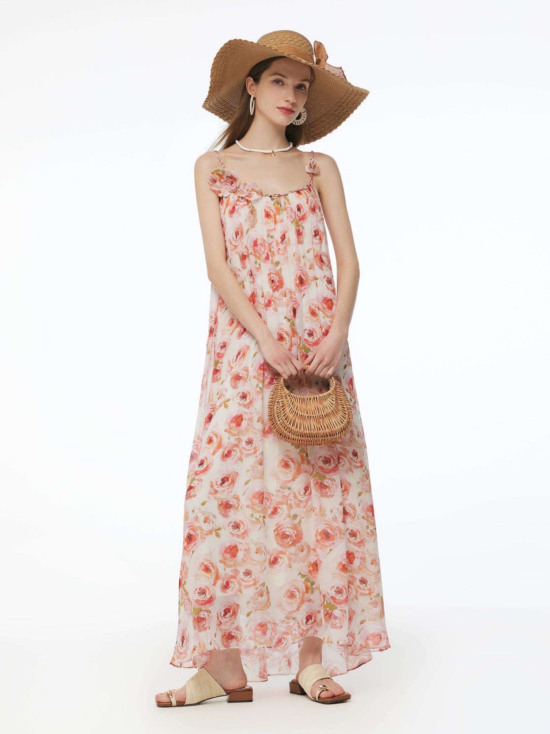 -10MM Mulberry Silk -With braided belt -With detachable flower Crafted from luxurious 10 Momme Mulberry silk, this strap dress is lightweight, breathable, and soft to the touch. It features a loose A-line silhouette, a braided belt and adjustable straps for a customizable, comfortable fit. The detachable flower detail