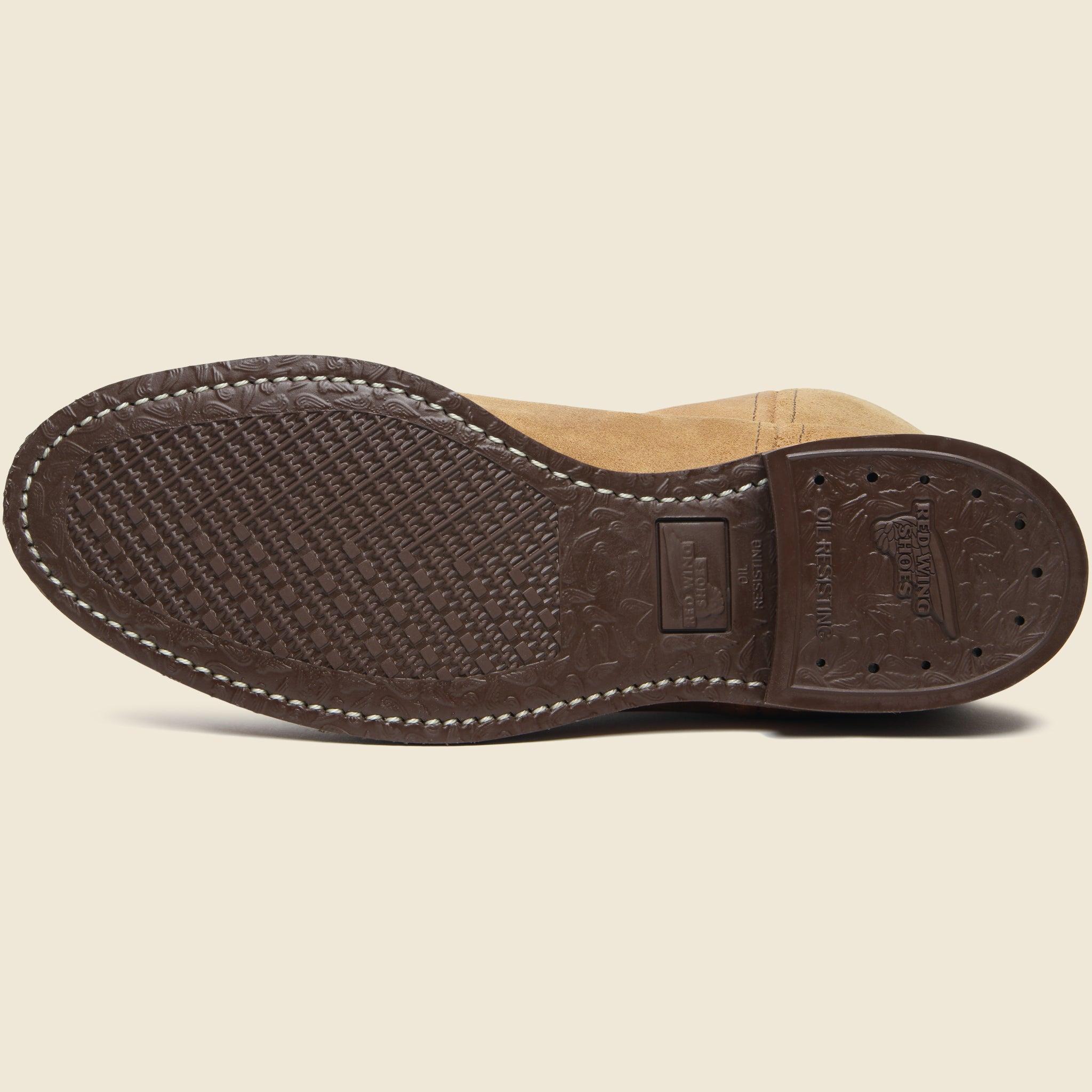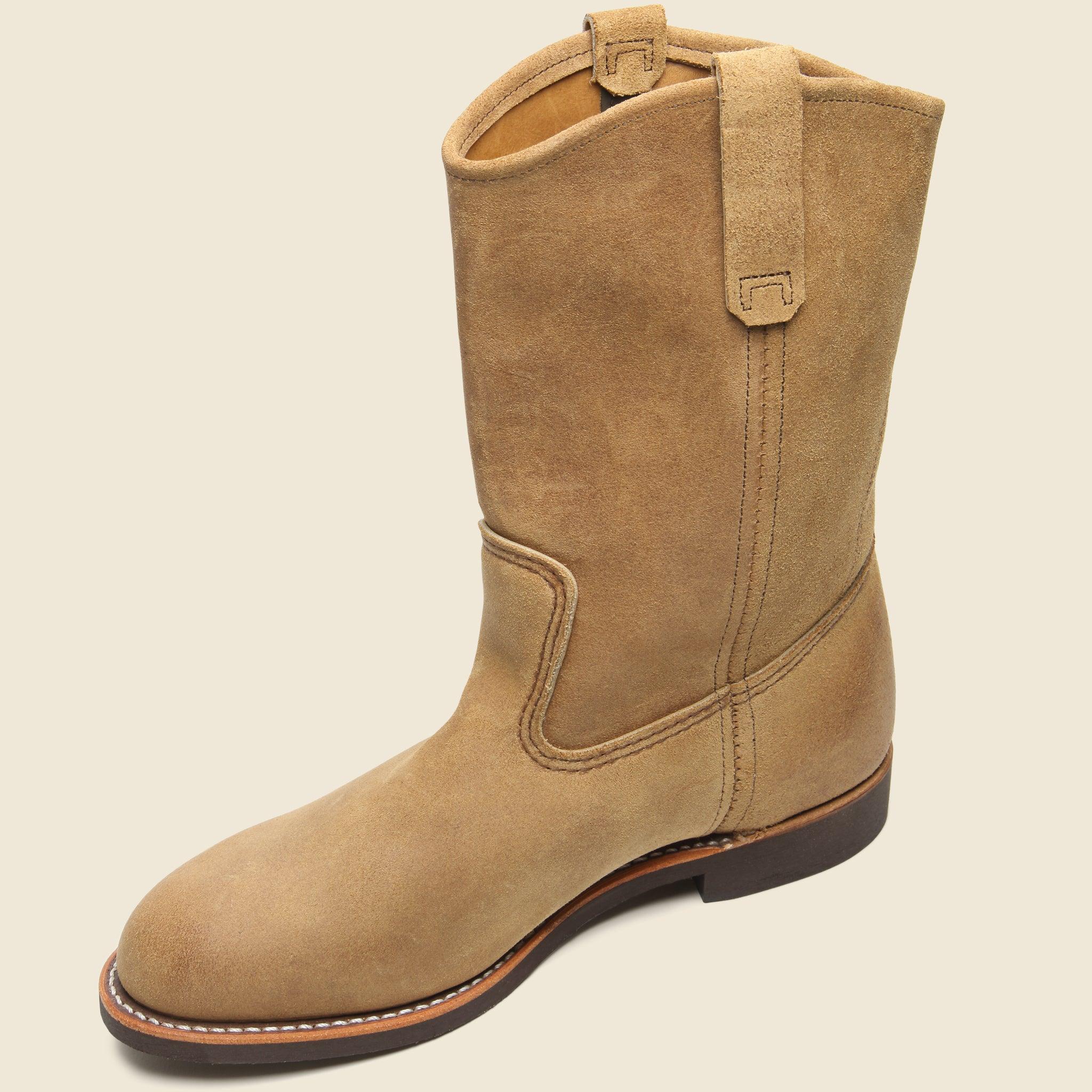 The Red Wing Shoe Company had an office in Dallas, Texas as early as 1923 to serve the unique market of ranchers, cowboys and oil drilling roughnecks in the region. In 1958, this pull-on, Roper-style boot was introduced & given a new name, Pecos, after a small town in the Permian Basin and since then, it’s evolved into one of Red Wing’s most popular styles, thanks to its simple design, comfortable fit, and rugged good looks. The 8060 is expertly crafted from their iconic Hawthorne Muleskinner leather that breaks in beautifully over time, and comes finished with an oil-resistant brown Chemigum sole for a sure-footed grip out in the field, and their classic Goodyear welt construction to extend the life of each pair by decades. This one runs a little big & we recommend sizing down by a half size. Hawthorne Muleskinner Leather Oil-resistant Chemigum outsole Leather insole that forms to the shape of your foot over time Goodyear welt construction Triple stitched quality A taller, 11” shaft Classic Roper-style silhouette E Width Runs large, we recommend sizing down one half size Made in USA Materials: Upper: Leather | Sole: Chemigum