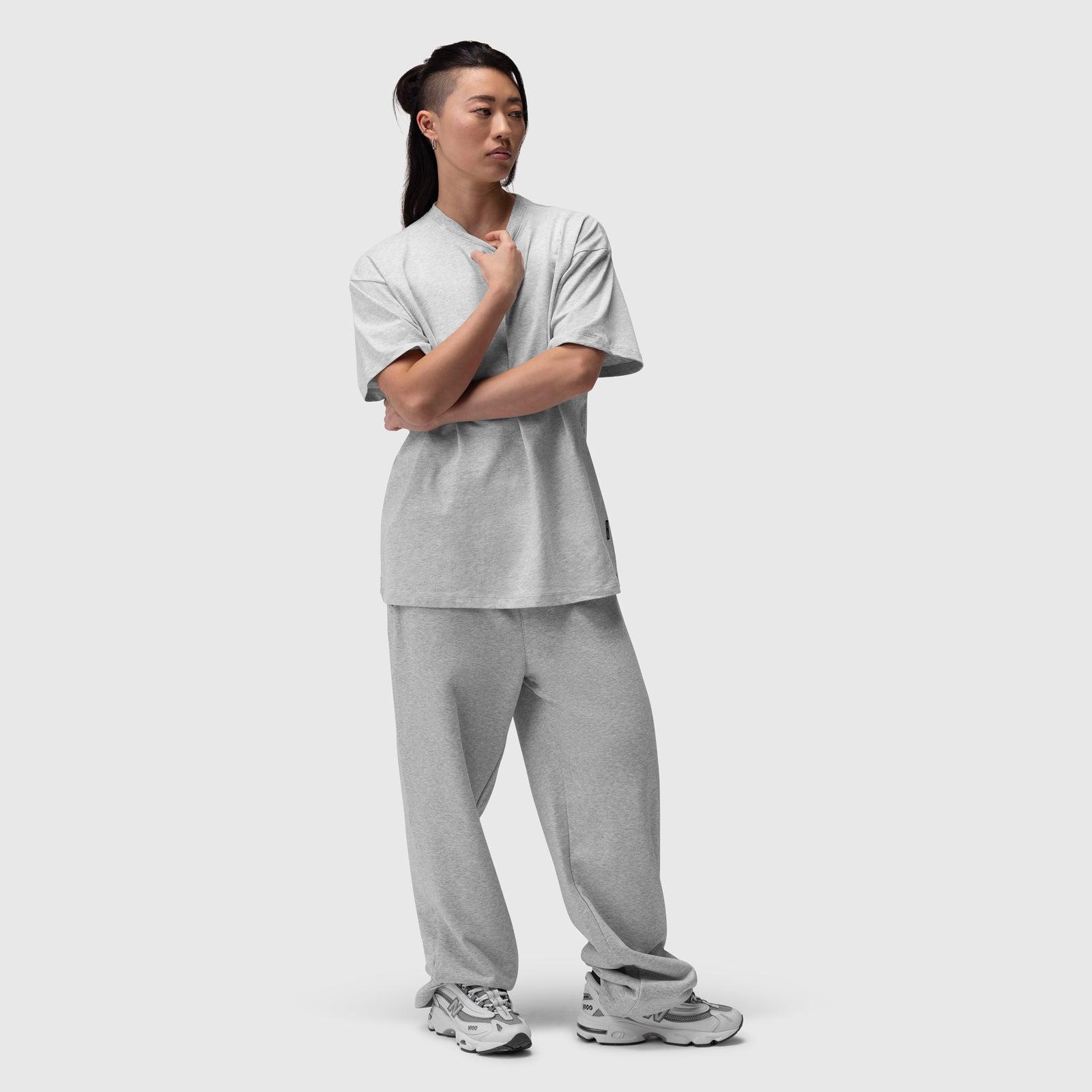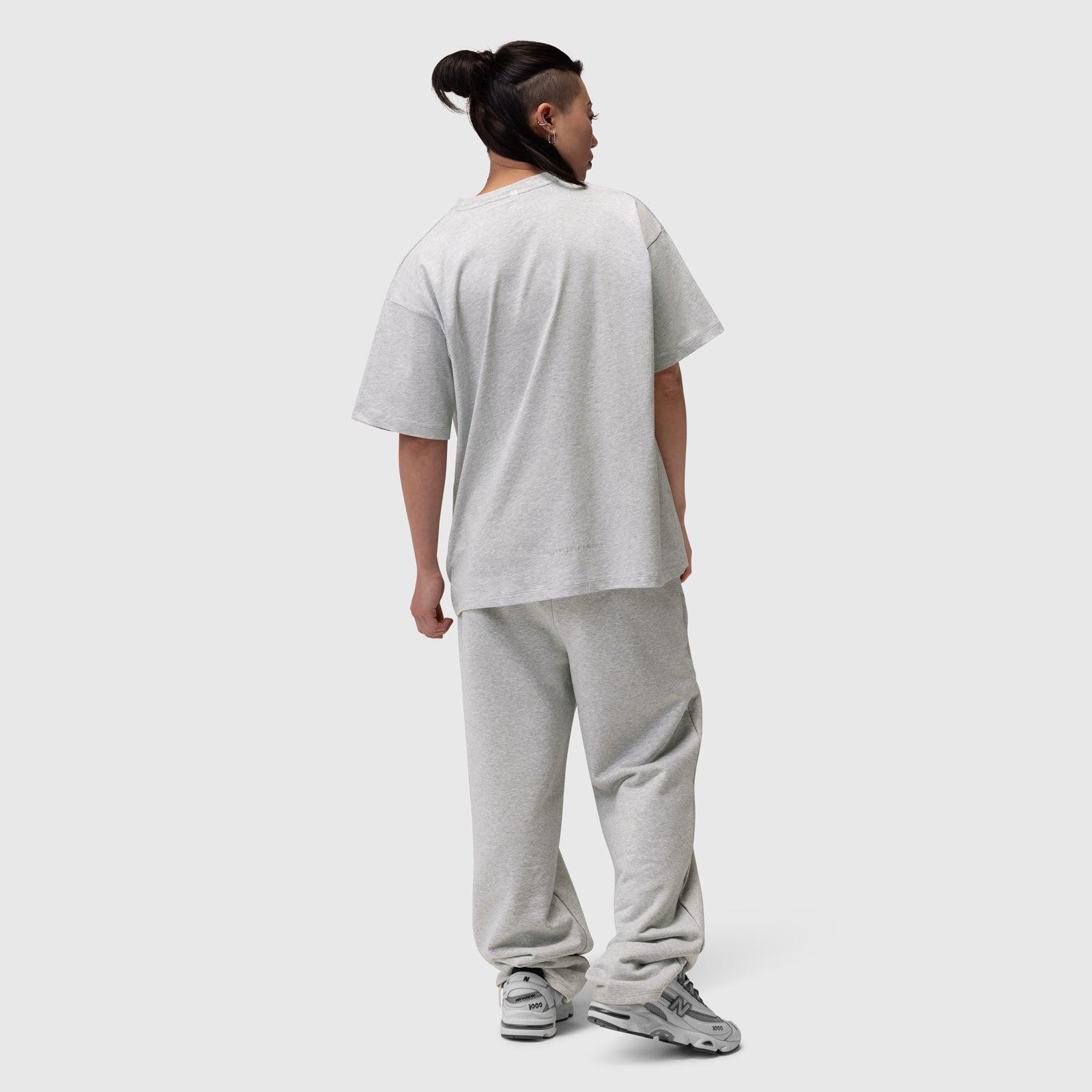 Relaxed-fit tee that blends vintage styling with modern comfort. Constructed from a midweight cotton blend with a soft, worn-in feel and finished with garment-dyed distressing for a washed look. Designed with drop shoulders, wide sleeves, and subtle neckline abrasion for a broken-in aesthetic. A unisex silhouette with elevated detailing, ideal for training or everyday wear. Model is 5'5" and 127lbs wearing size M.