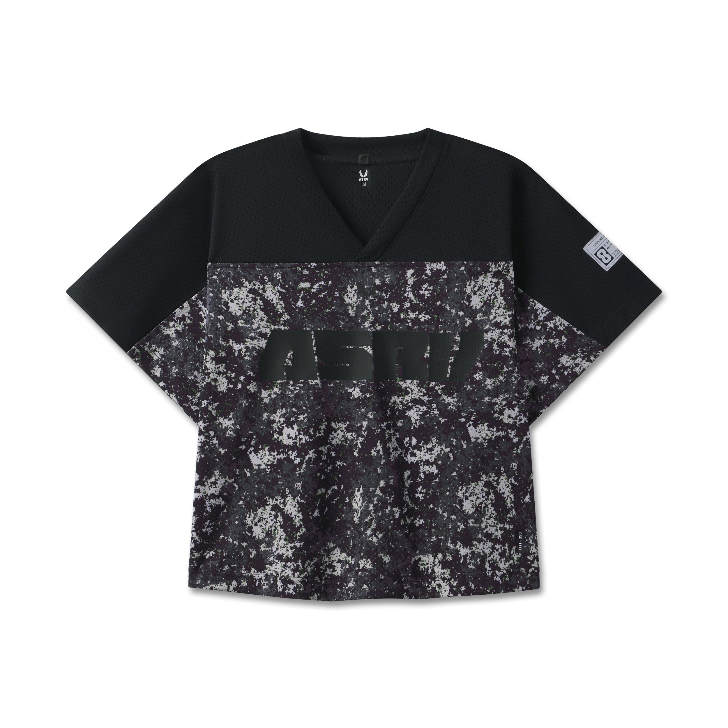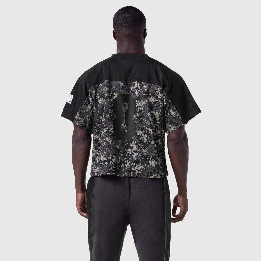 Oversized cropped jersey constructed from our lightweight Ion-Mesh™ fabric. Designed with a double-layered top panel for added structure, a flat v-neck collar, and custom branded “OTWR” neck tape for comfort and durability. Relaxed sleeves create a vintage athletic fit. Finished with an ASRV “Blade” logo across the chest, a bold “8” on the back, and a woven patch label on the left sleeve. Model is 6’1 185lbs wearing size Medium.