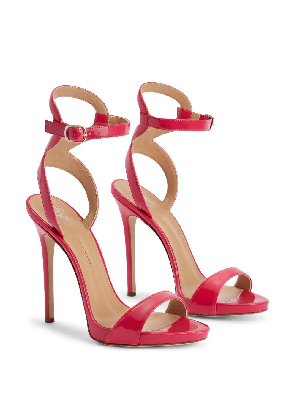 Giuseppe Zanotti 120mm Gwyneth sandals | Red | fuchsia pink | open toe | buckle-fastening ankle strap | branded insole | platform leather sole | 120mm high stiletto heel | Fabric/Leather/Fabric | Heeled Sandals | Sandals | Shoes | Women