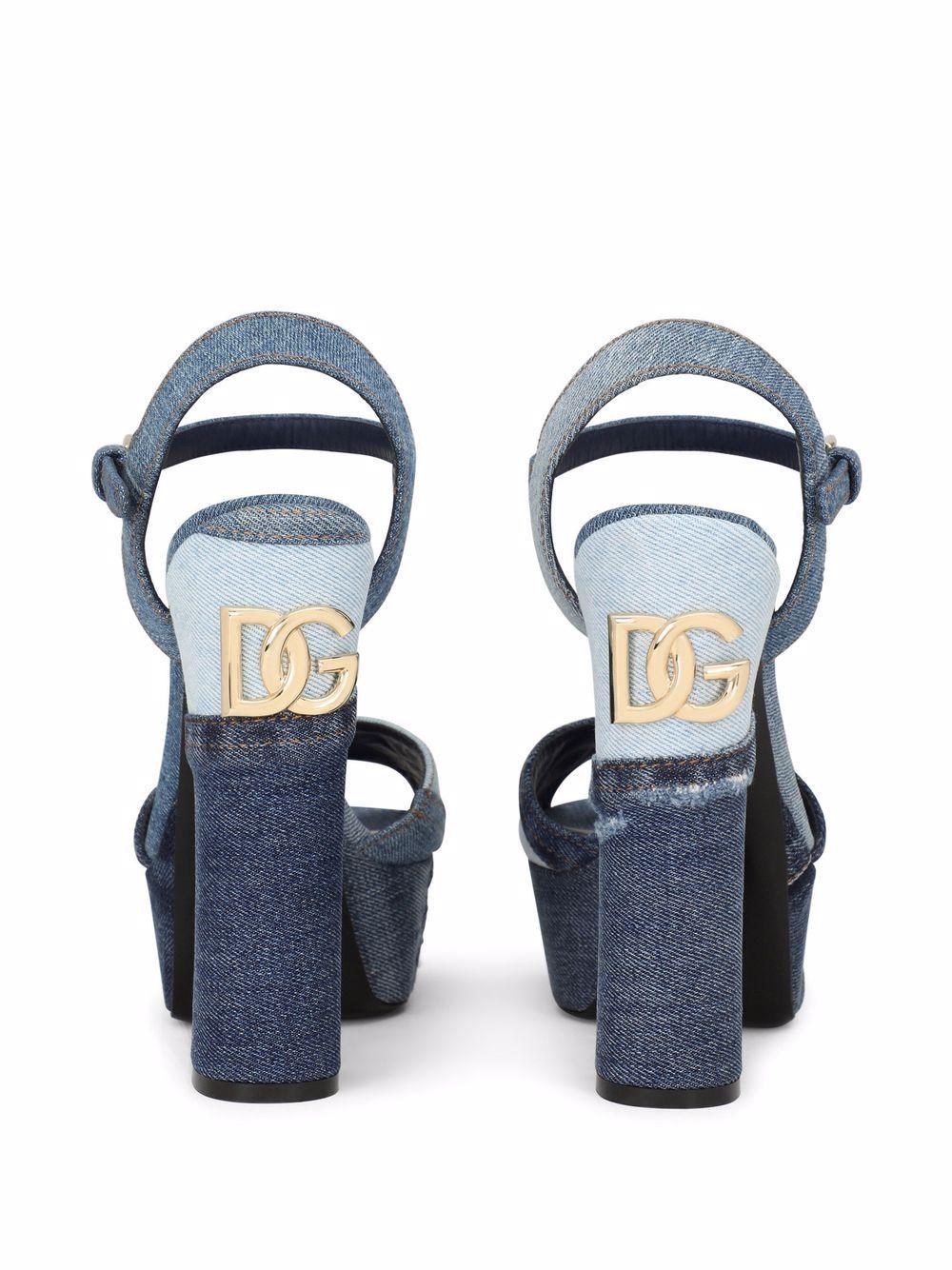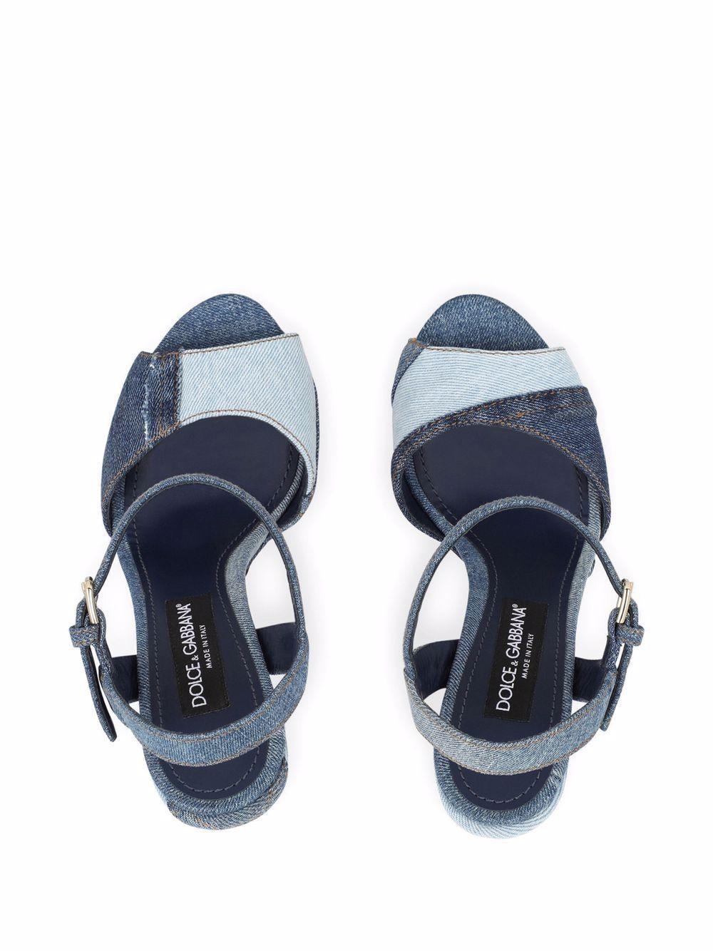 Dolce & Gabbana 145mm patchwork-denim platform sandals | Blue | Blue cotton logo-plaque open-toe sandals from DOLCE & GABBANA featuring multi-panel design, open toe, buckle-fastening ankle strap and gold-tone logo plaque. | Cotton | Heeled Sandals | Sandals | Shoes | Women
