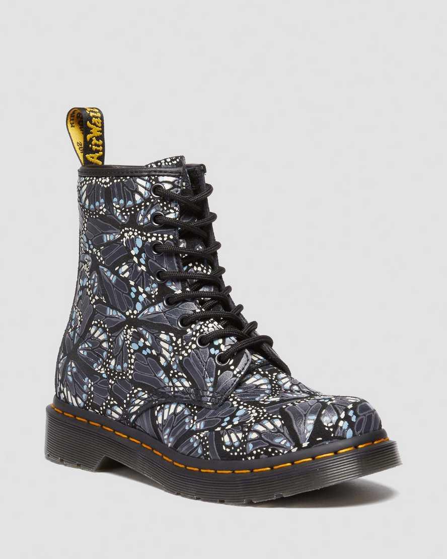 The 1460 boot retuned with our butterfly-inspired print. Designed to turn heads and demand attention. A collision of colors and shapes covers the EH Suede construction. A soft and supple leather perfect for seasonal warmth. The 8-eye boot is equipped with antique black hardware and laces. Set on a smoke DMS outsole. Completed with our signature yellow welt stitch. Born on 1st April 1960. Named the 1460 boot. Our 8-eye boot is unmistakable. Remixed and redefined — never replicated. EH Suede is a classic suede leather with an enhanced, silky texture. The DMS sole is a cornerstone of Dr. Martens construction. A two-tone PVC sole marked with our signature grooving and our unique tread. One of our most flexible soles, well known for its comfort and stability. Construction - Made with a Goodyear-welted lines that are heat-sealed and reinforced with our signature welt stitch. Footbed - Wider and a more rounded toe shape.
