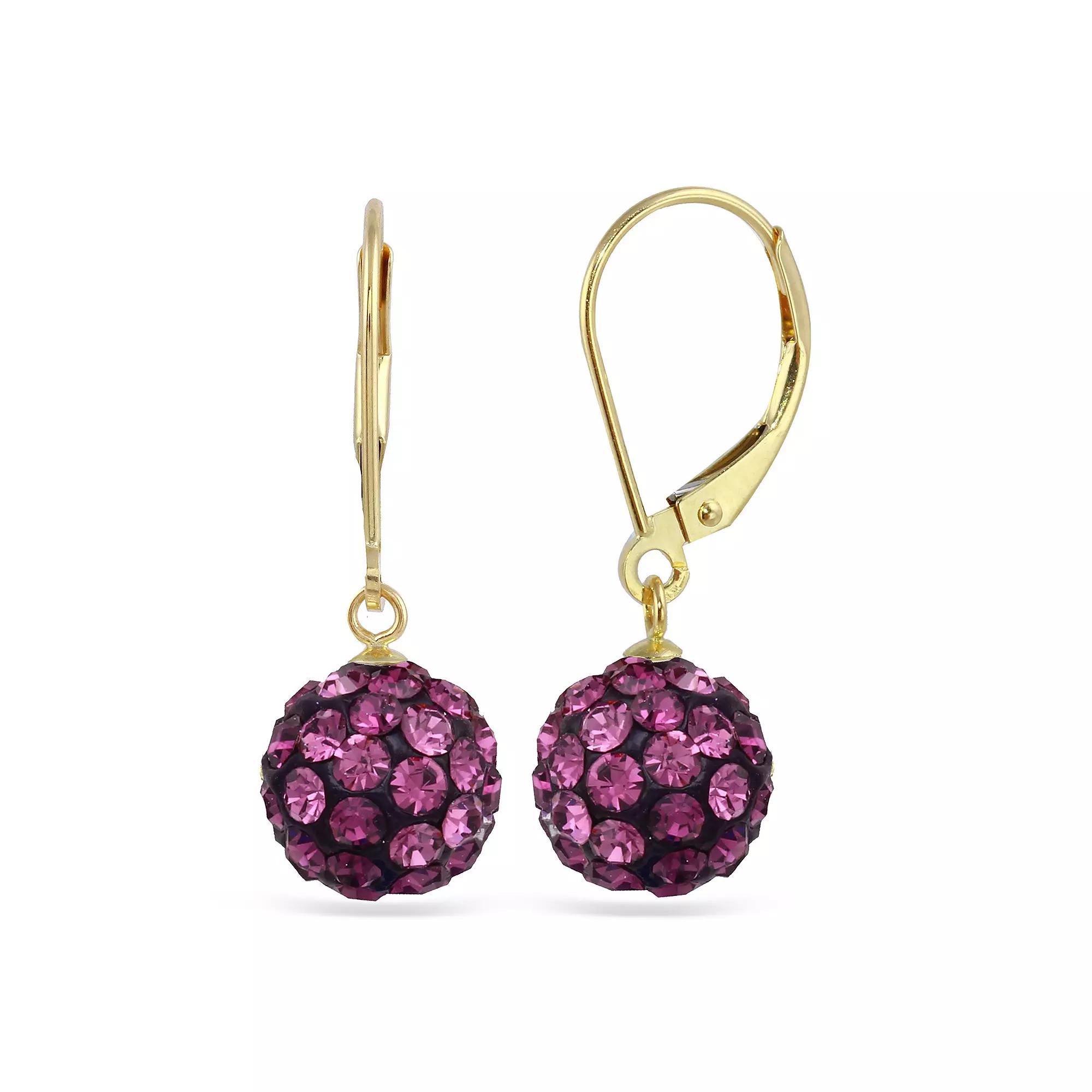 Dazzle and delight with these shimmering crystal ball drop earrings. Dazzle and delight with these shimmering crystal ball drop earrings. Length: 10 mm Closures: leverback Metal: sterling silver Finish: polished Packaging: boxed Size: One Size. Color: Purple. Gender: female. Age Group: adult.