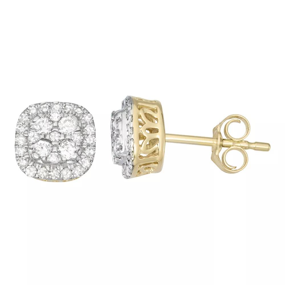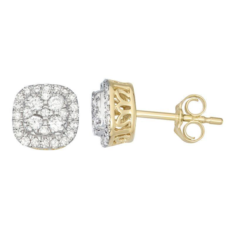 Clusters of round-cut diamonds make these 14k gold studs a dazzling choice. Clusters of round-cut diamonds make these 14k gold studs a dazzling choice. Metal: 14k gold Backings: post Packaging: boxed Finish: polished Length: 8 mmDIAMOND DETAILS Total weight: 1/2 ct. Shape: round Setting: prong Gemstones may have been treated to enhance their appearance. Special care may be required. Please visit our Gemstone Treatment & Special Care Guide for more information. Image(s) may be enlarged to show detail. Please note, due to the high value of this item, a signature may be required upon delivery. Size: One Size. Color: White. Gender: female. Age Group: adult.
