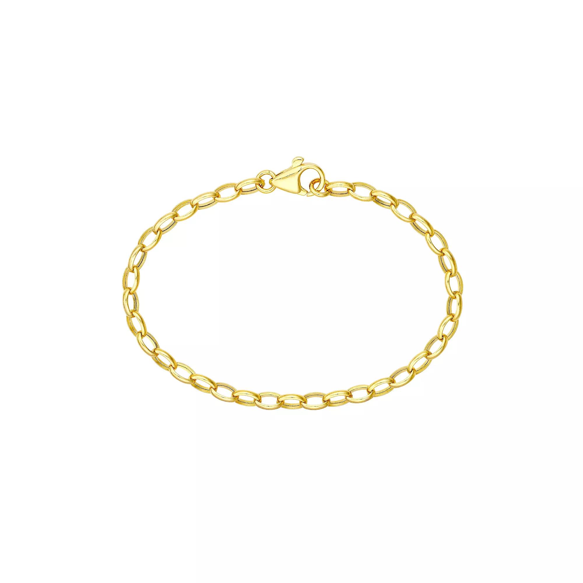 Whether worn alone or layered with other bracelets, this 14k gold hollow oval link bracelet is a versatile addition to any jewelry collection. Click on this JEWELRY & WATCHES GUIDE to learn about fit, styles, materials and more! Whether worn alone or layered with other bracelets, this 14k gold hollow oval link bracelet is a versatile addition to any jewelry collection. Click on this JEWELRY & WATCHES GUIDE to learn about fit, styles, materials and more! FEATURES Chain type: hollow link Length: 7.5 in. Chain width: 4.5 mm Clasp: lobster-claw Nickel safe Metal: 14k gold Finish: polished Packaging: boxed Size: 7.5. Gender: female. Age Group: adult.